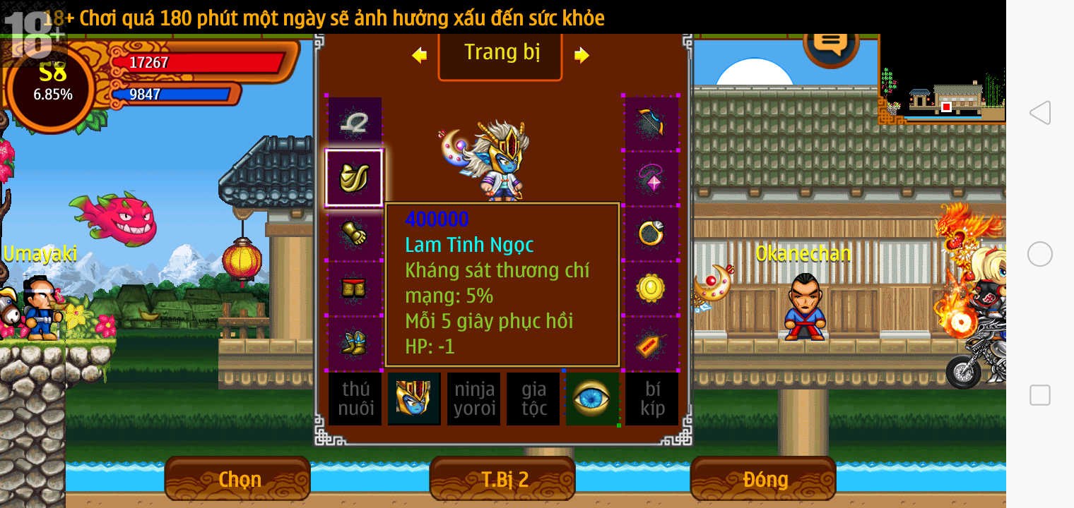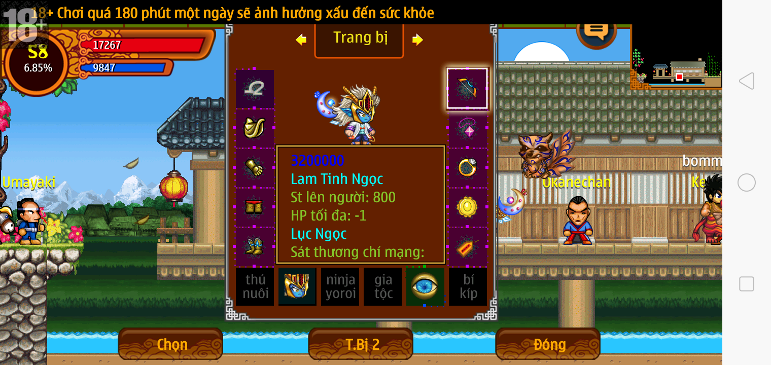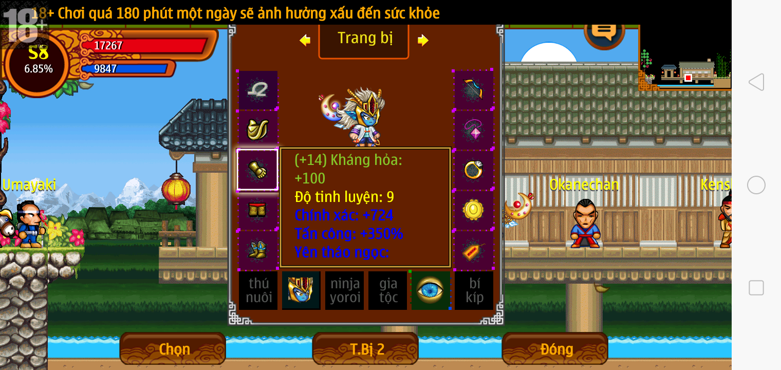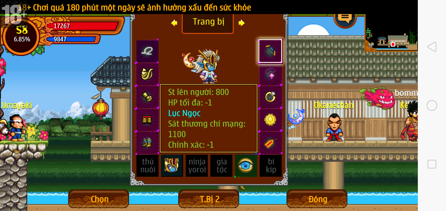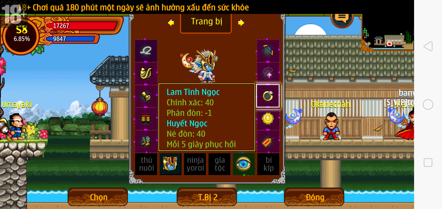 Thông tin: Vk14 tl9, ~f14, ftl ngon, Mắt 4, Ngọc: 2v4 8v3...,Sói 5*2cm, cx, né, ftbs9999, 723M Yên, Max sách, 15 bánh, CT vv: 3 cái, CT: Jirai ~4...VIP PRO