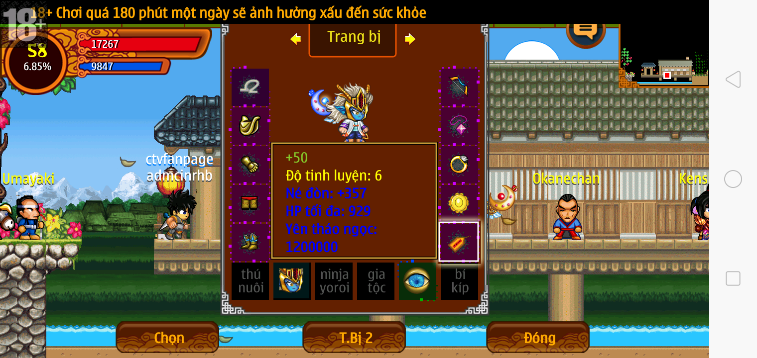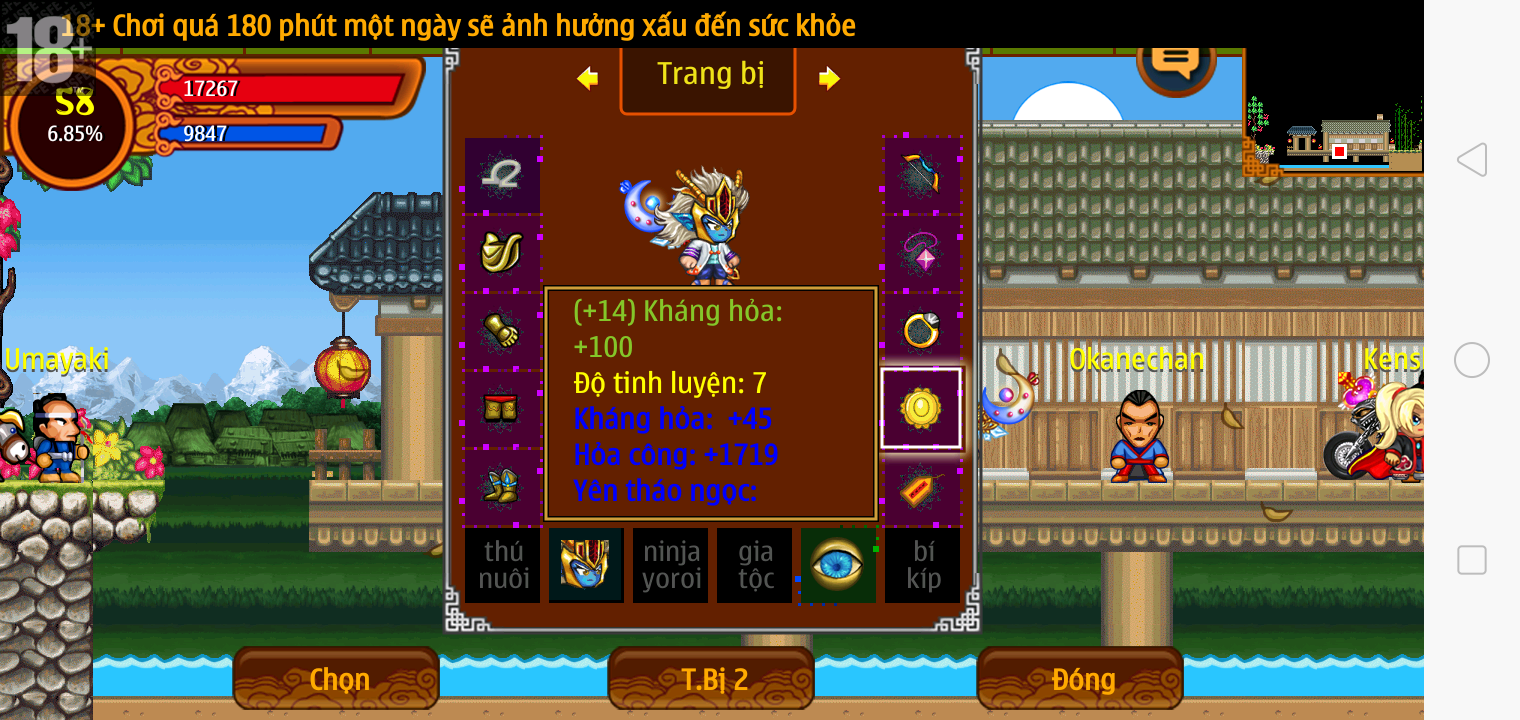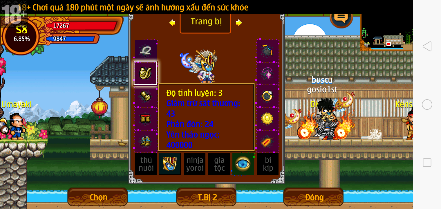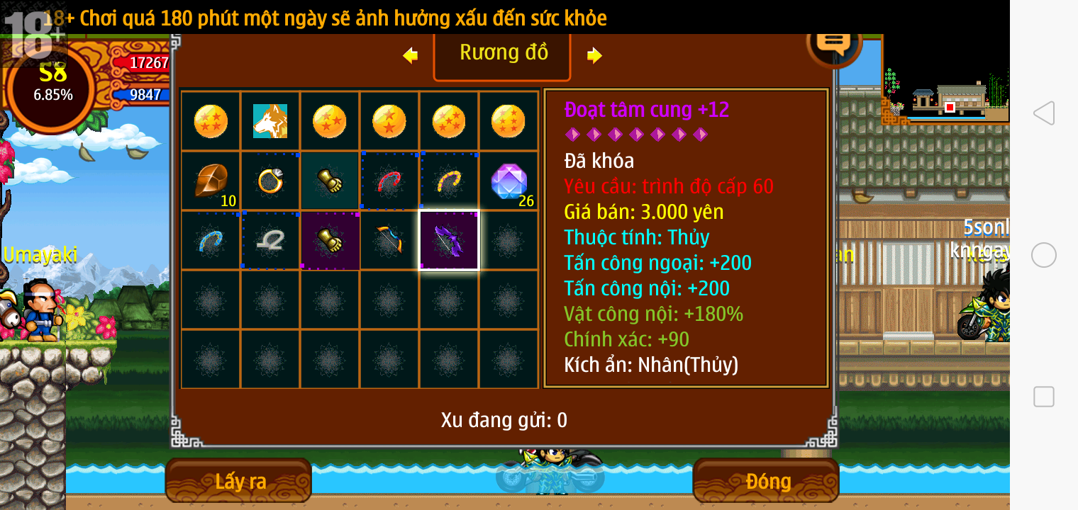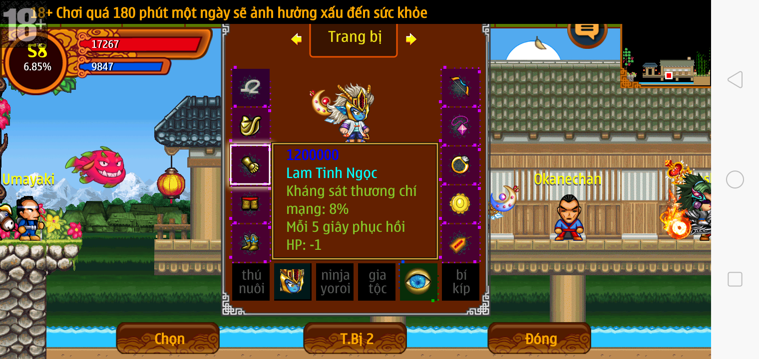 Thông tin: Vk14 tl9, ~f14, ftl ngon, Mắt 4, Ngọc: 2v4 8v3...,Sói 5*2cm, cx, né, ftbs9999, 723M Yên, Max sách, 15 bánh, CT vv: 3 cái, CT: Jirai ~4...VIP PRO