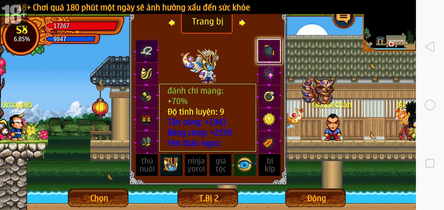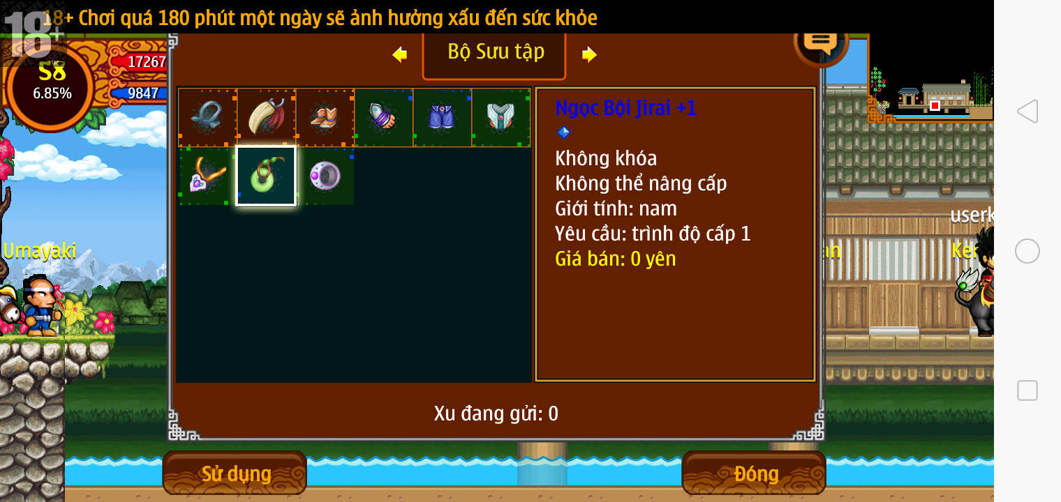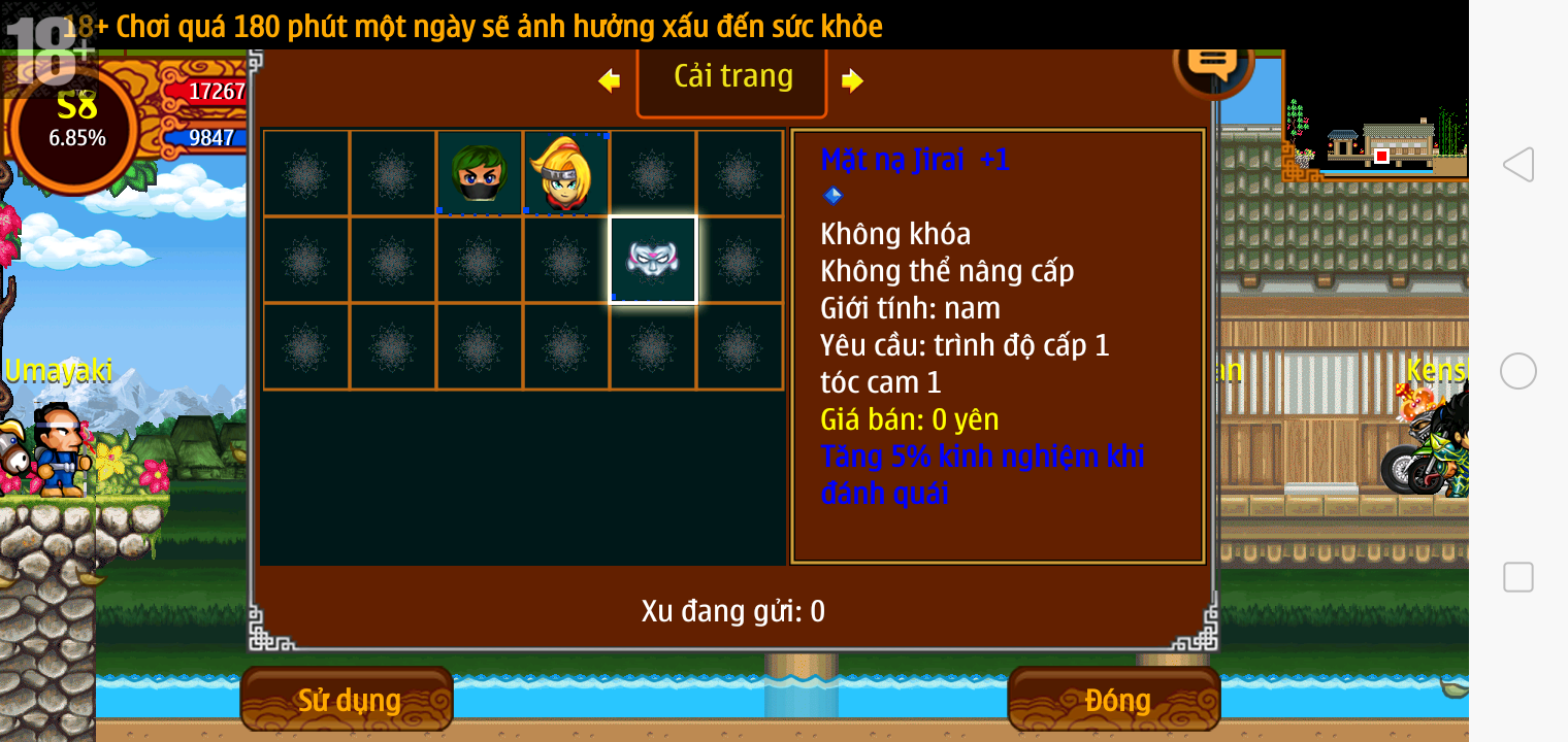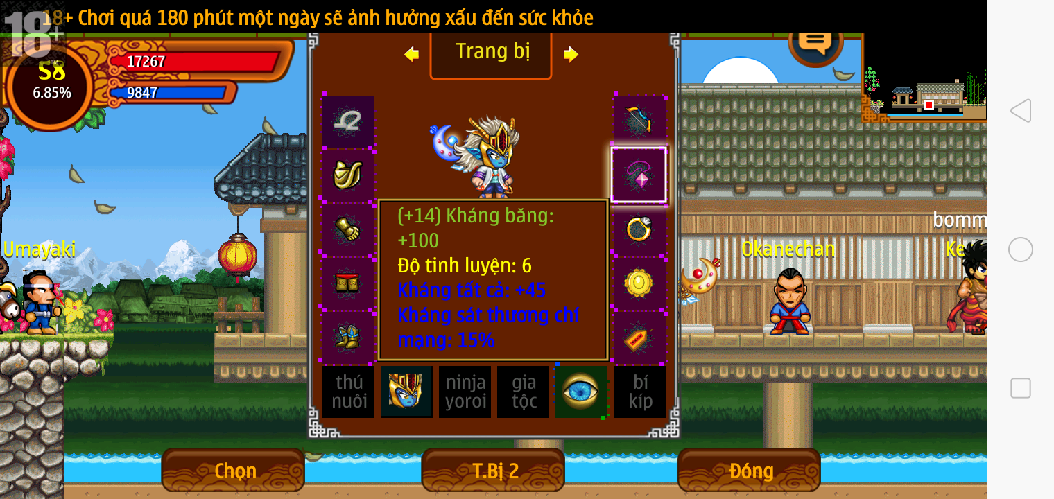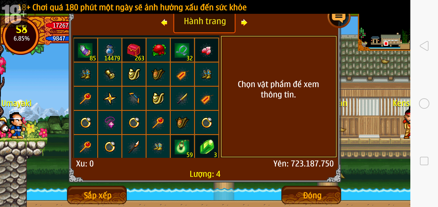 Thông tin: Vk14 tl9, ~f14, ftl ngon, Mắt 4, Ngọc: 2v4 8v3...,Sói 5*2cm, cx, né, ftbs9999, 723M Yên, Max sách, 15 bánh, CT vv: 3 cái, CT: Jirai ~4...VIP PRO