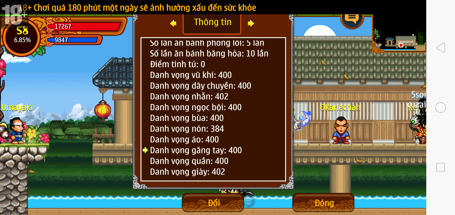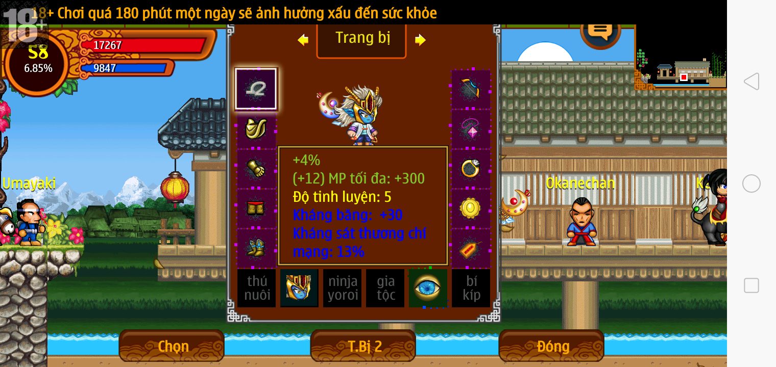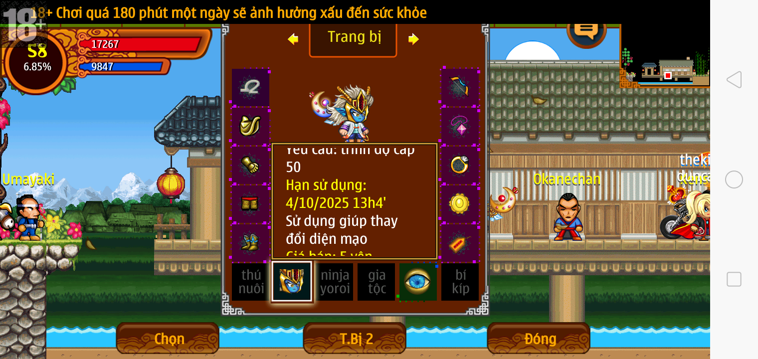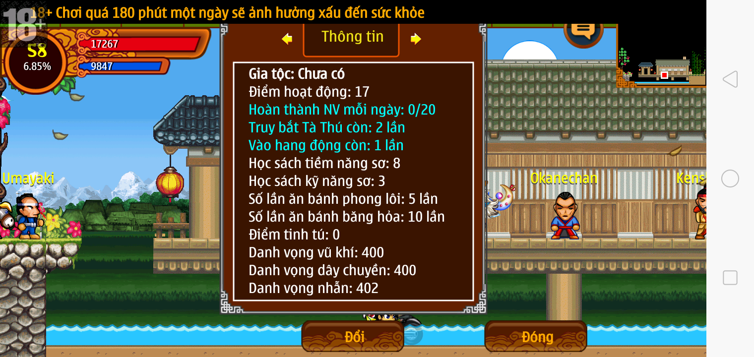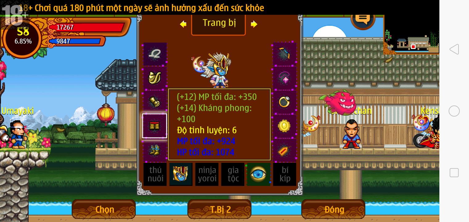 Thông tin: Vk14 tl9, ~f14, ftl ngon, Mắt 4, Ngọc: 2v4 8v3...,Sói 5*2cm, cx, né, ftbs9999, 723M Yên, Max sách, 15 bánh, CT vv: 3 cái, CT: Jirai ~4...VIP PRO
