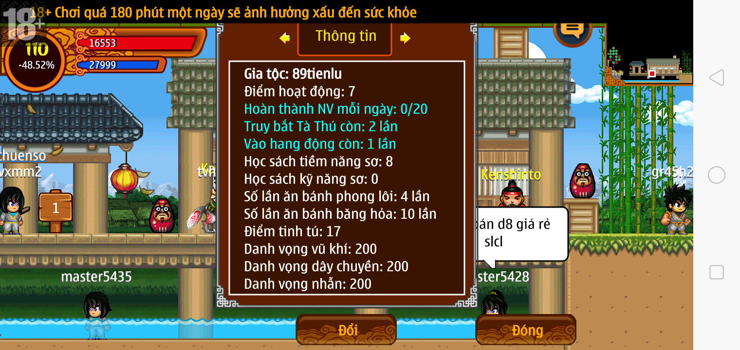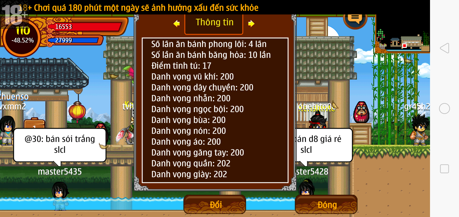 Thông tin: Vk16 tl9, 6m16, ftl5->9, Yoroi 9, Mawst 3, Sói 5sao 2cm, né, tc, ftbs6679, 722M Yên, 8 sách, 14 bánh, VIP sv4