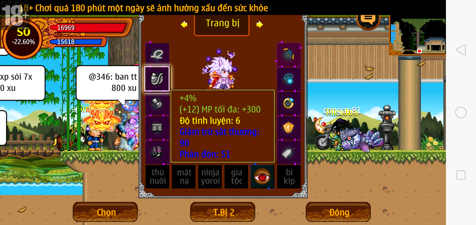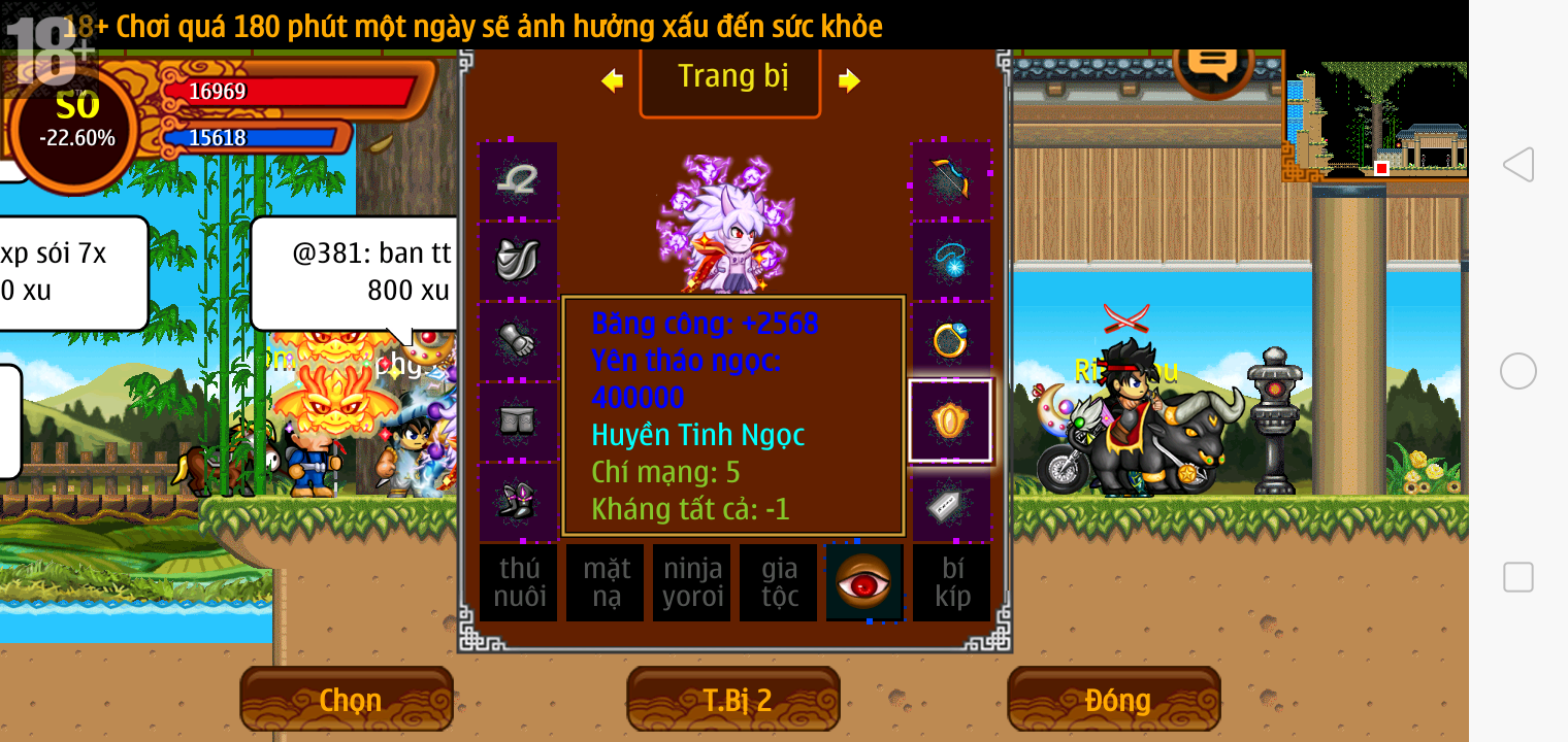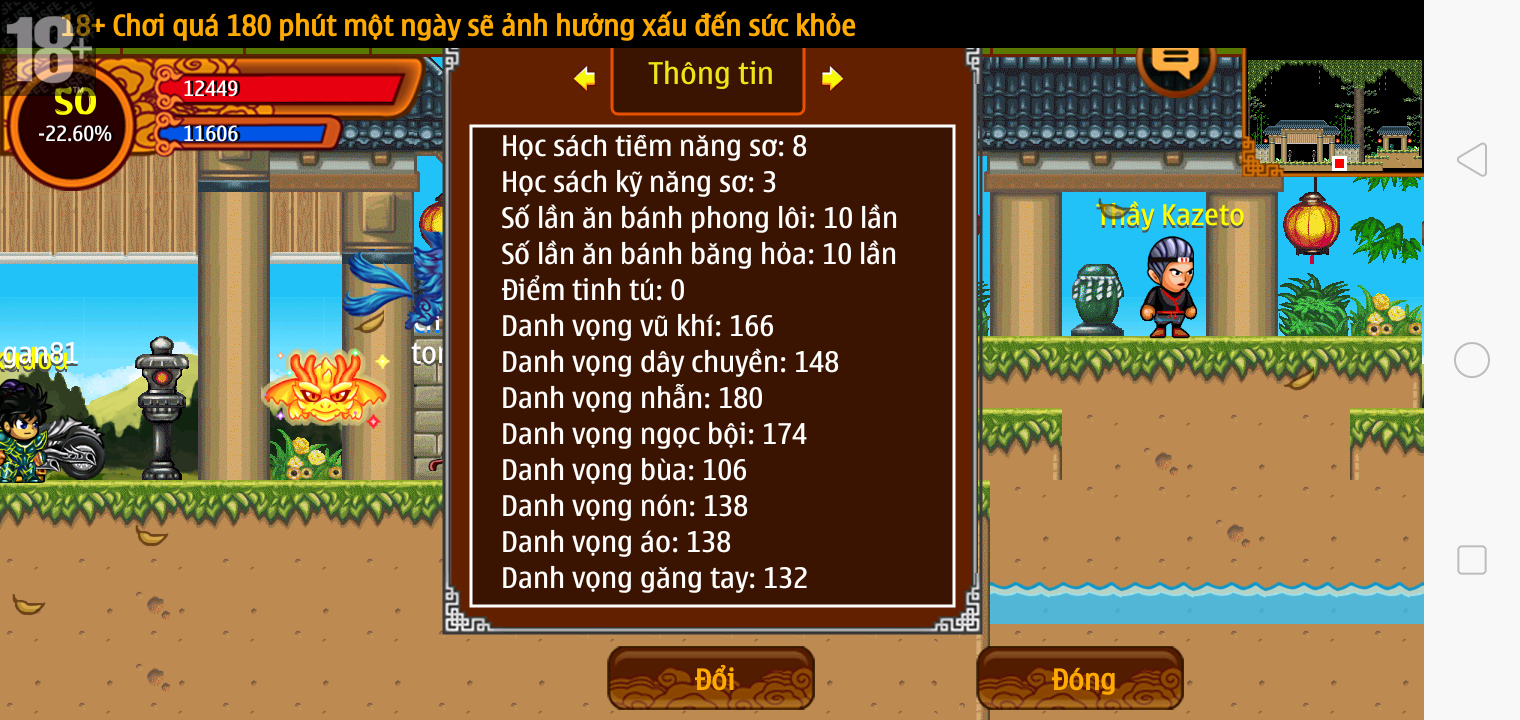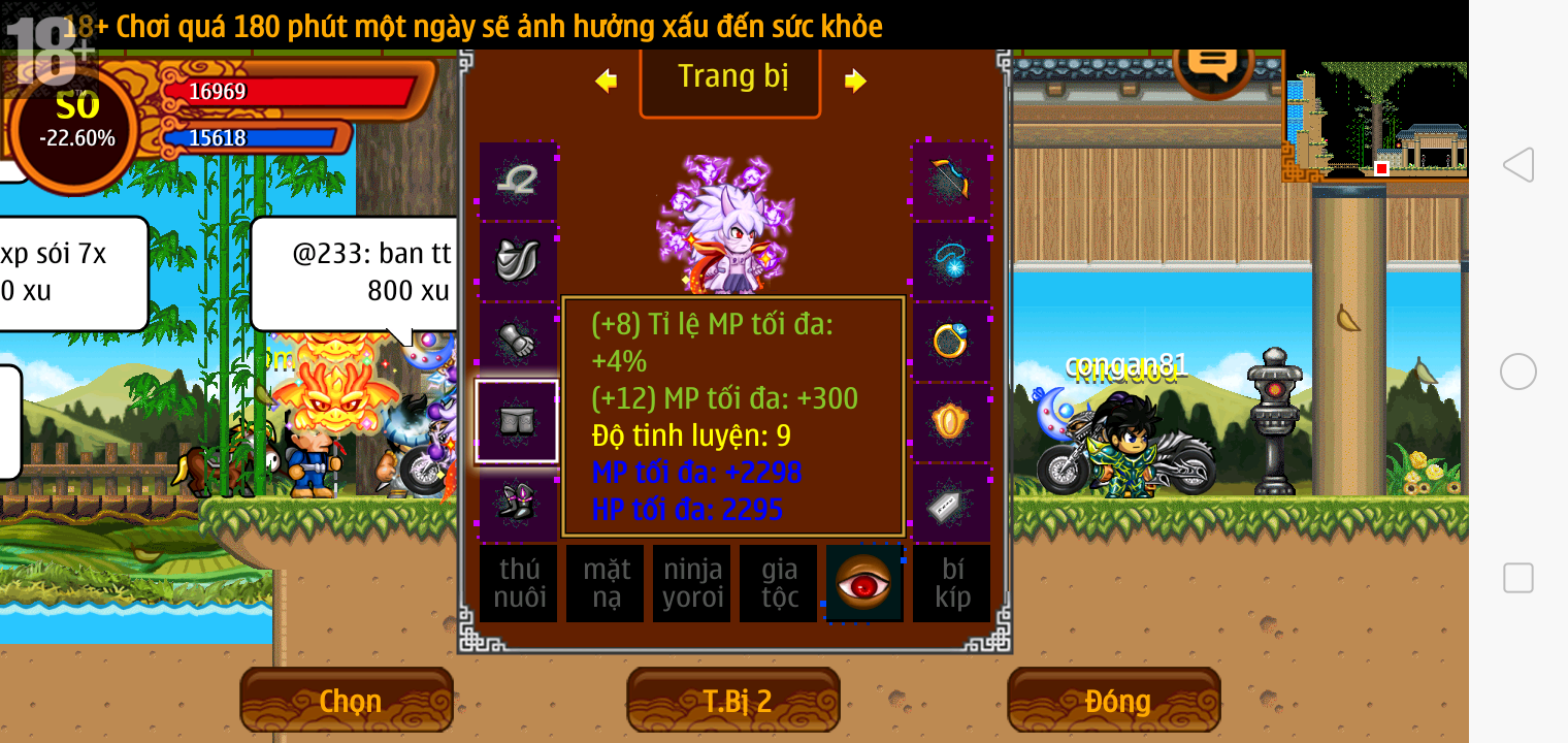 Thông tin: Vk14 tl9, ~ftl9, Mắt 2, Sói 100 2cm, tc,cx, ftbs8899, x2 Vĩ thú vv, 312M Yên, Max sách, Max bánh,...VIP