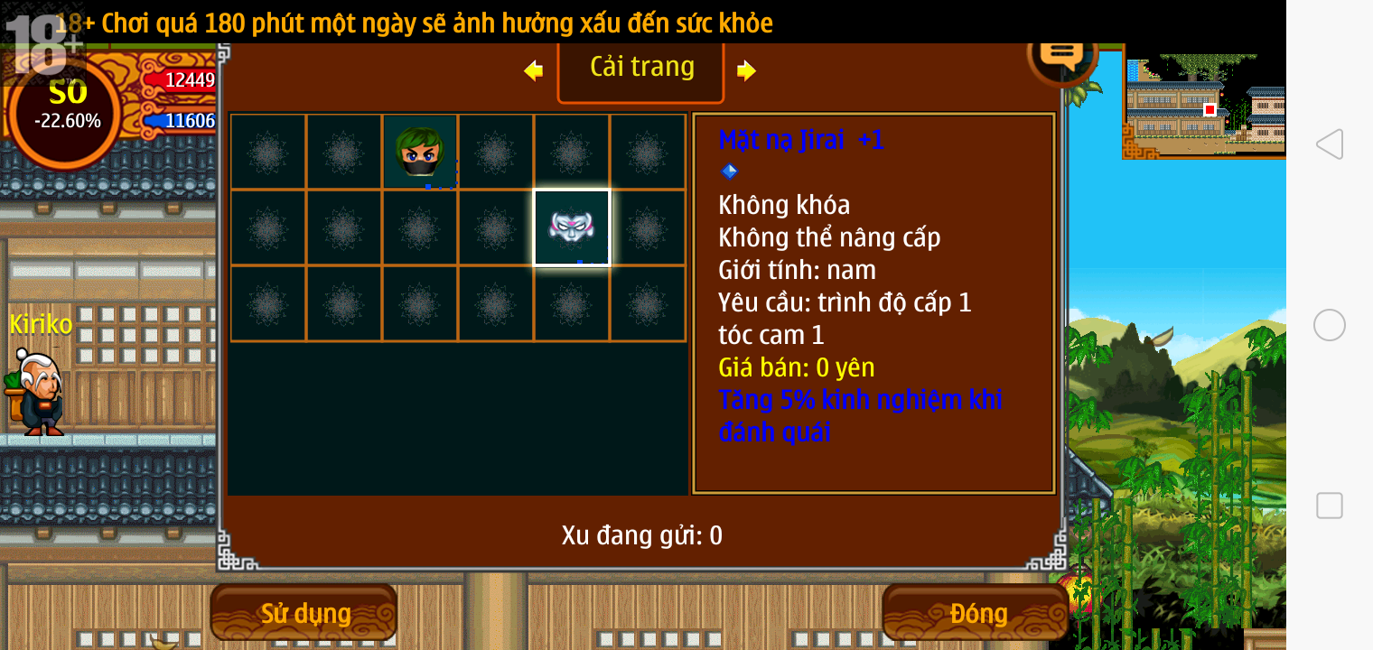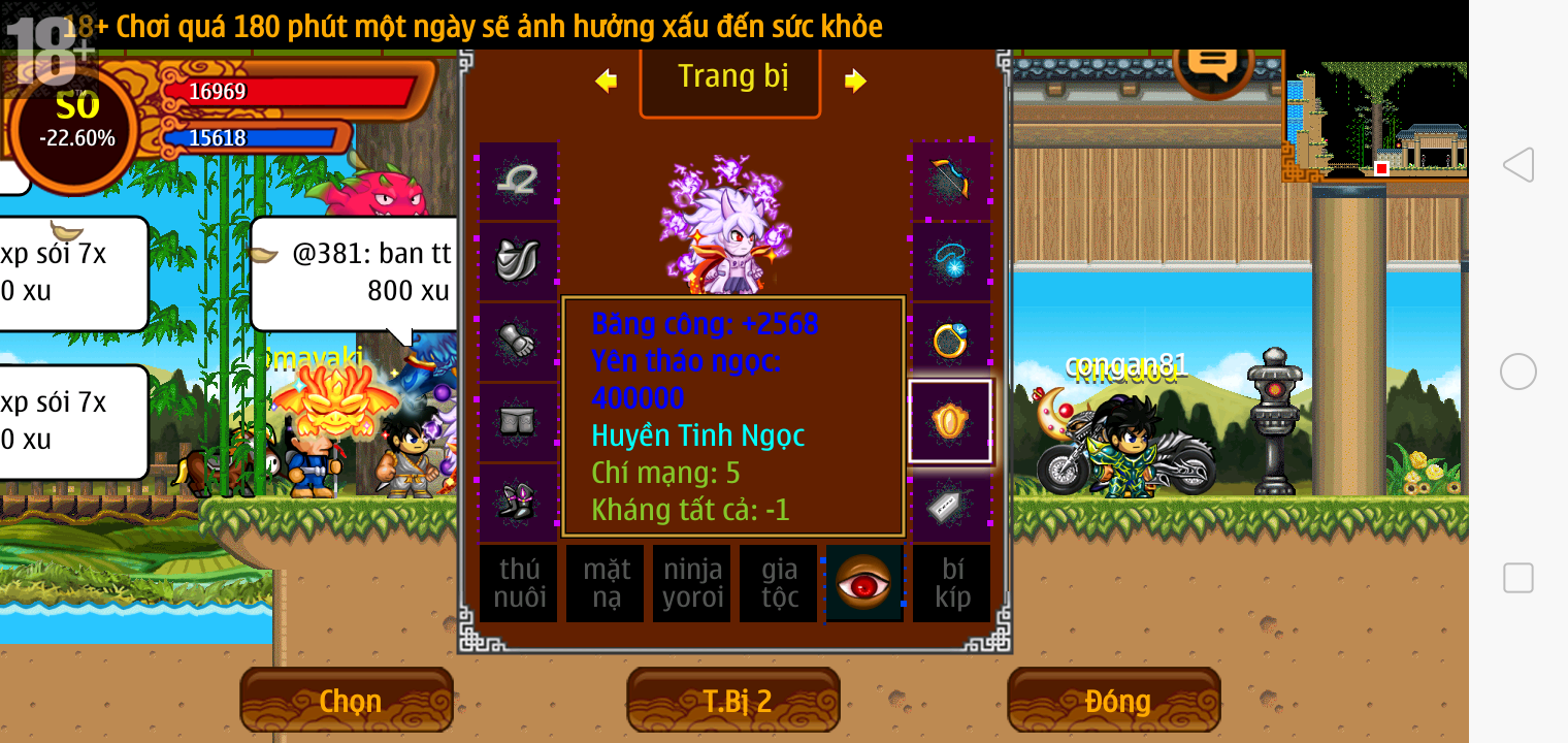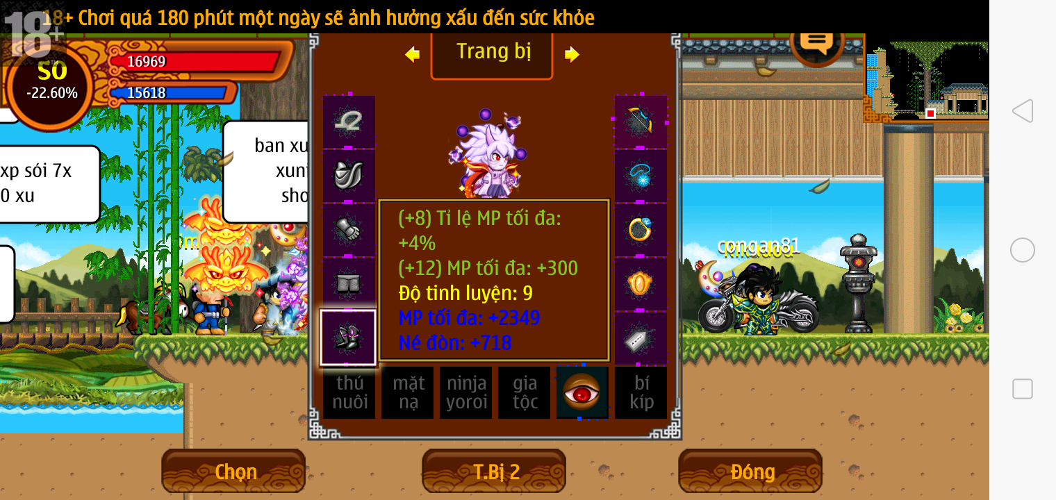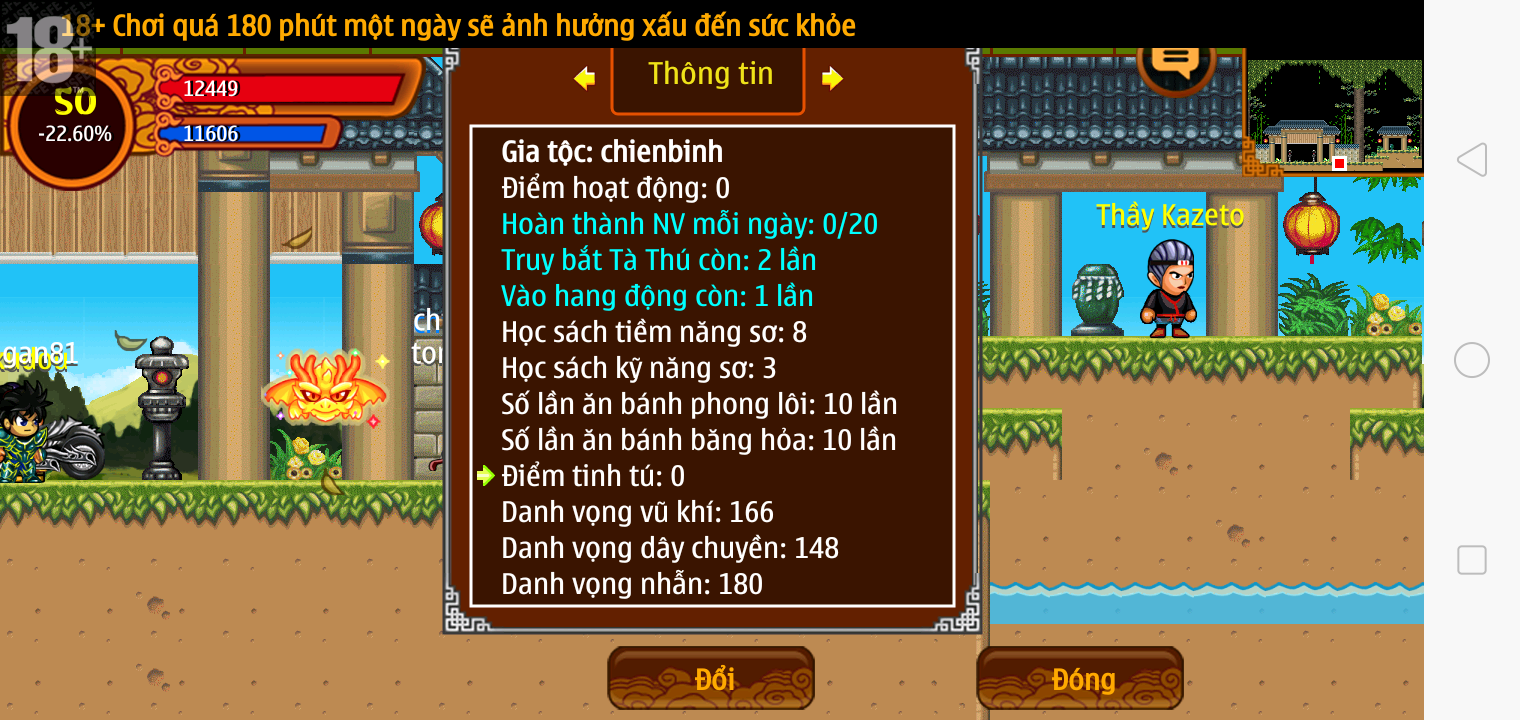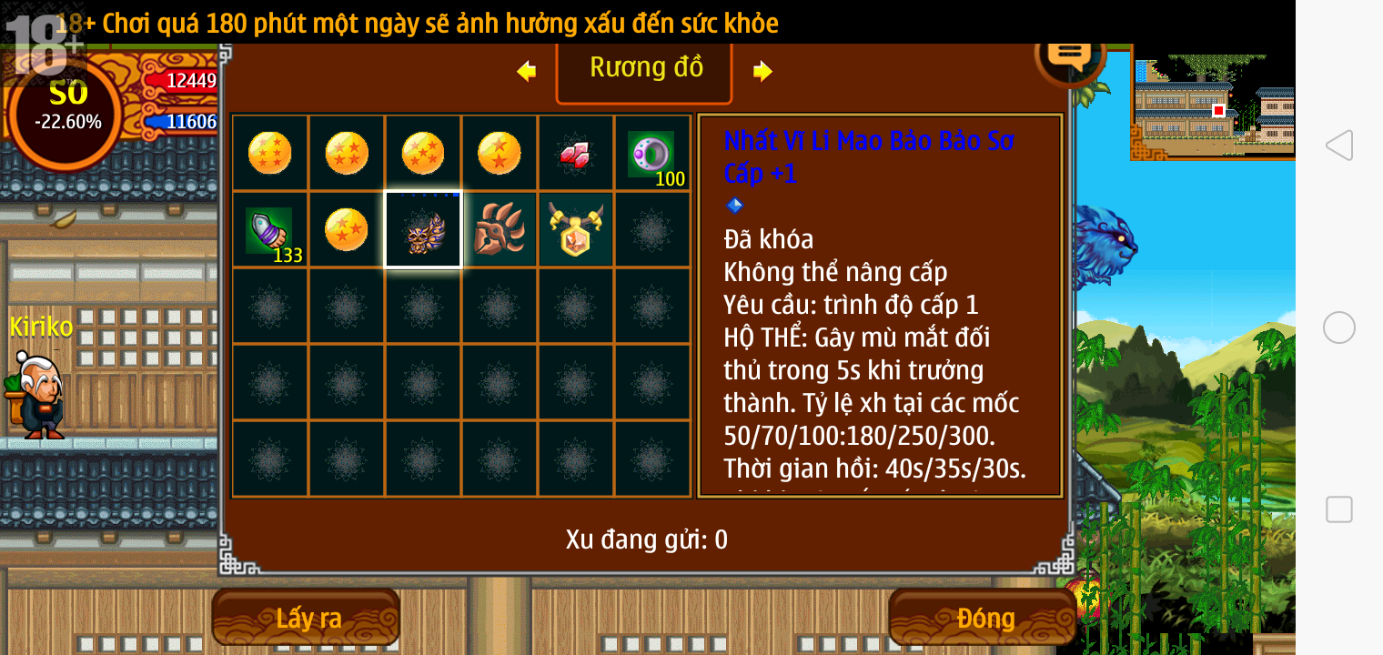 Thông tin: Vk14 tl9, ~ftl9, Mắt 2, Sói 100 2cm, tc,cx, ftbs8899, x2 Vĩ thú vv, 312M Yên, Max sách, Max bánh,...VIP