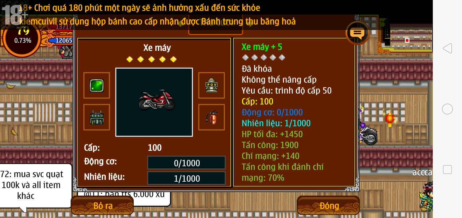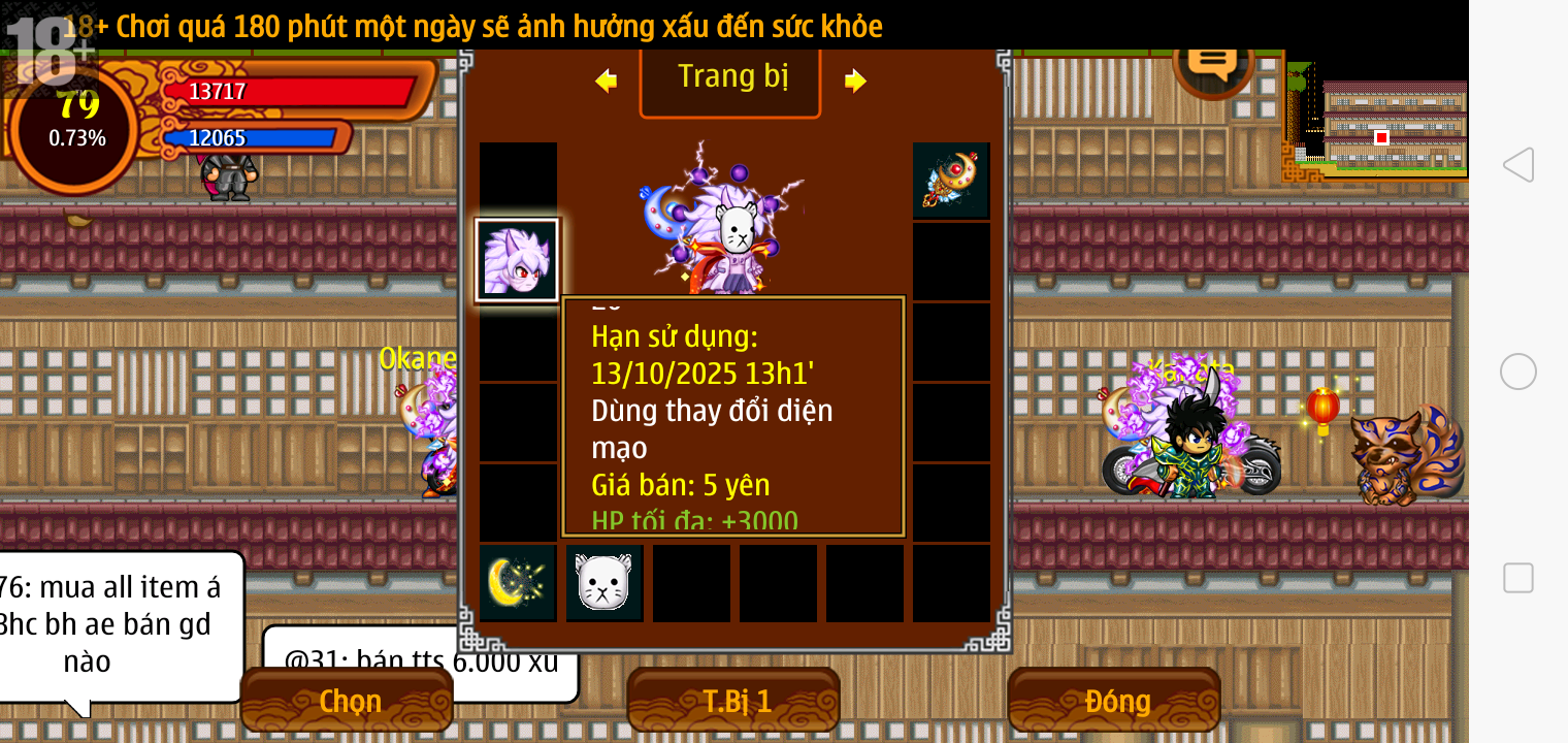 Thông tin: Vk14 tl6, f12, XM 5*2cm, tc,hp, ftbs, Nhiều đồ gia hạn lâu dài, gần có mắt, 346lg, 182M Yên, sv23 VIP