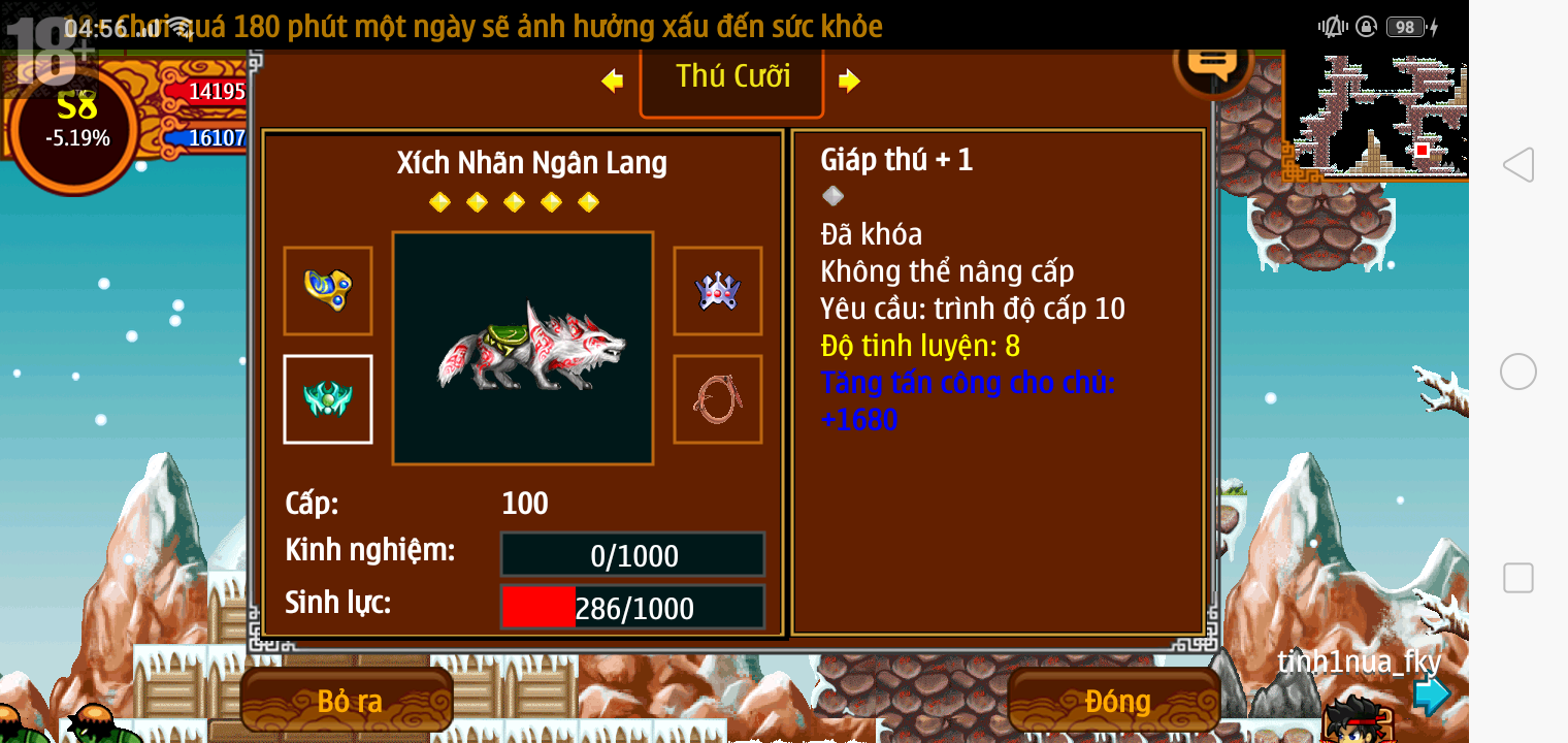 Thông tin: Vk14 tl9, f12,14, tl ngon, Mắt 3, Sói 5*2cm, cx, tc, ftbs4568,