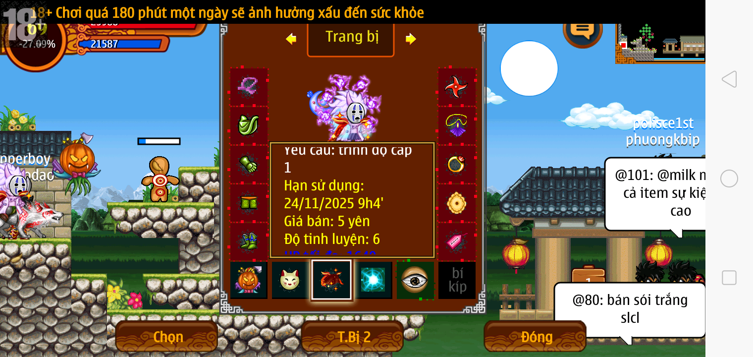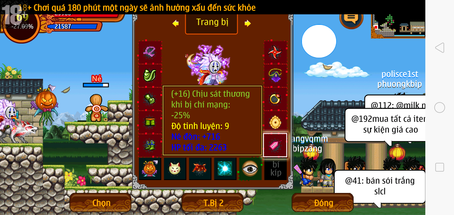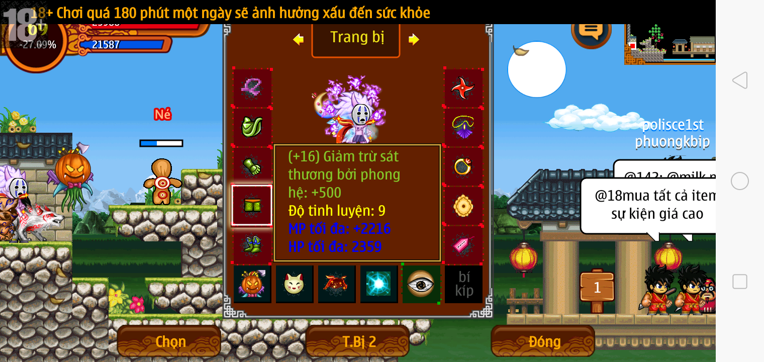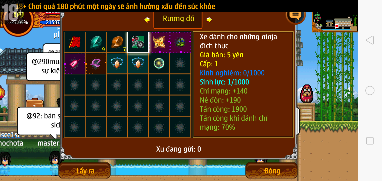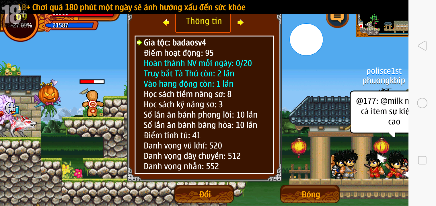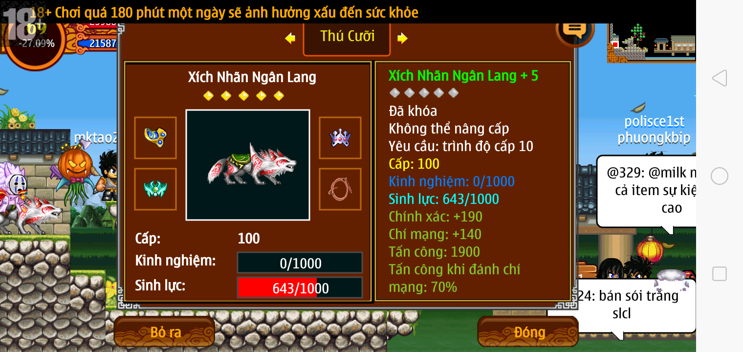 Thông tin: F16, ftl9, Sx 5* + Sói 5*2cm, tc, cx, ftbs9999, Vĩ thú v.v, 1nv, 104M Yên, CT vv: 2 cái, ~Jirai +4, Max sách, Max bánh,...VIP PRo