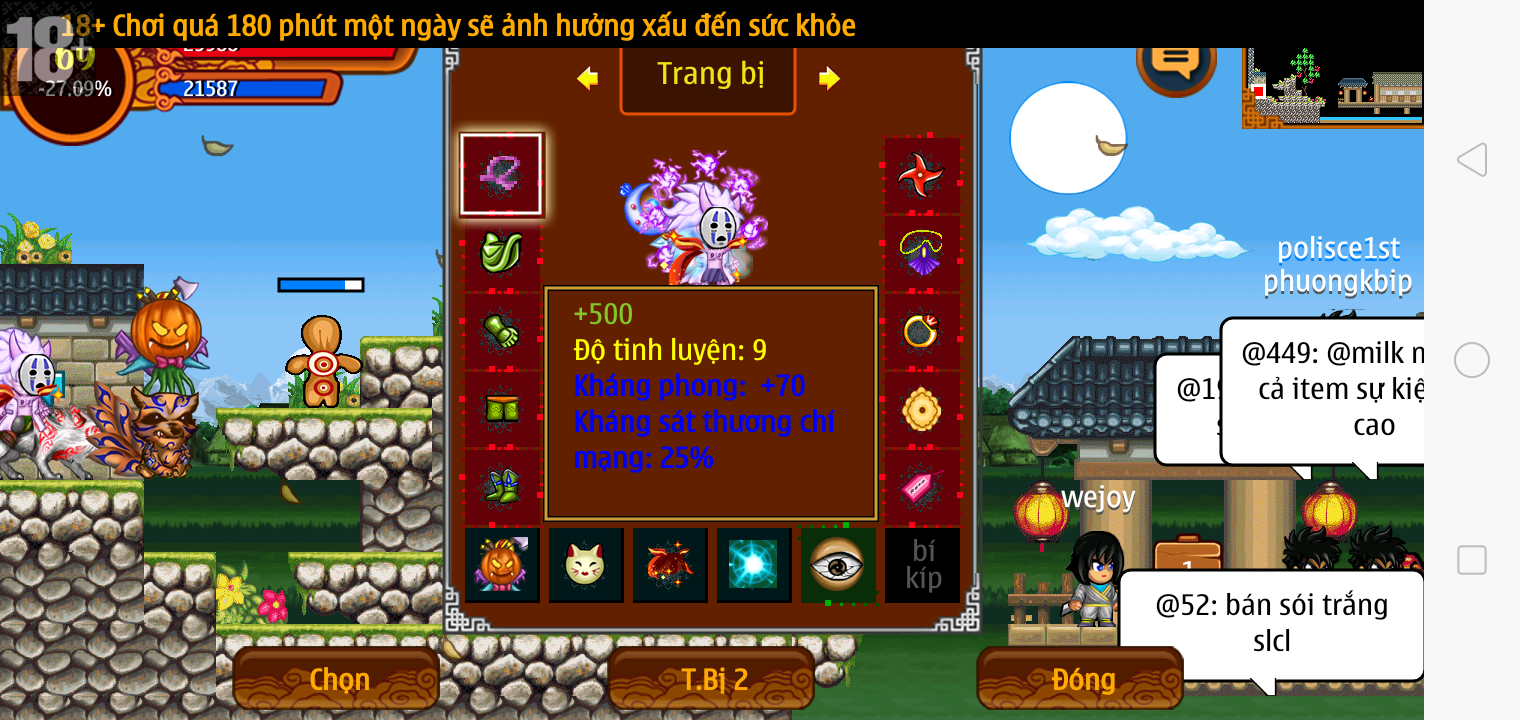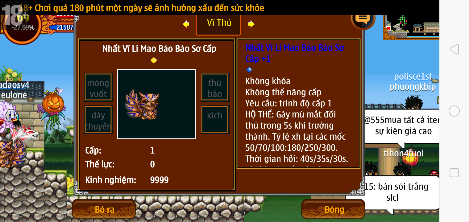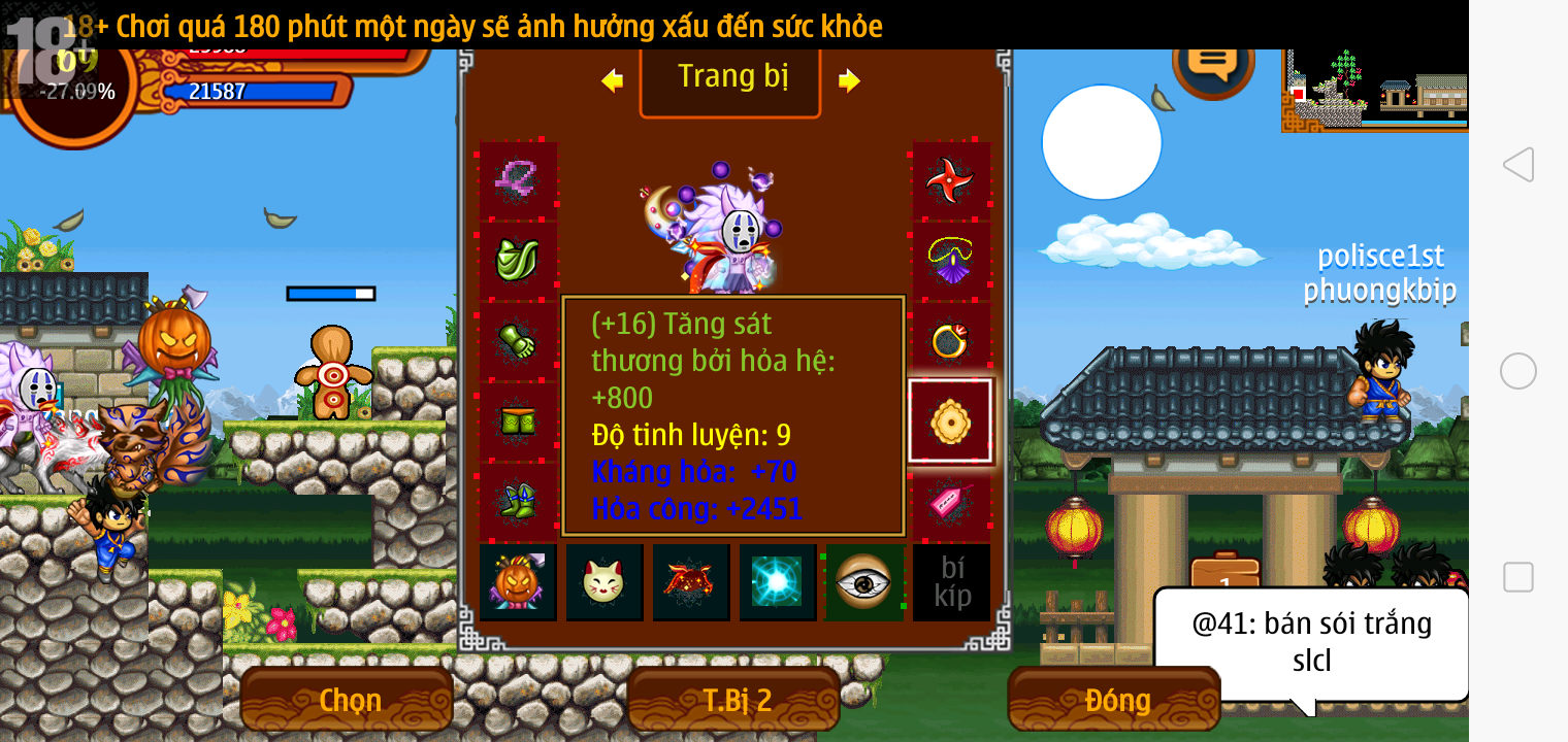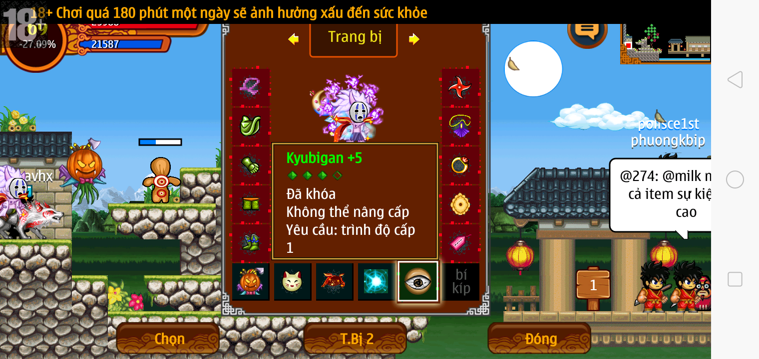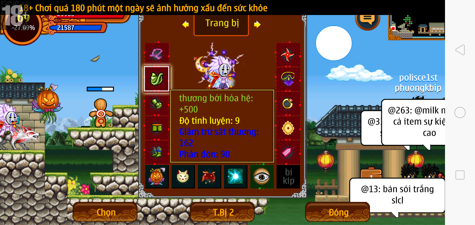 Thông tin: F16, ftl9, Sx 5* + Sói 5*2cm, tc, cx, ftbs9999, Vĩ thú v.v, 1nv, 104M Yên, CT vv: 2 cái, ~Jirai +4, Max sách, Max bánh,...VIP PRo