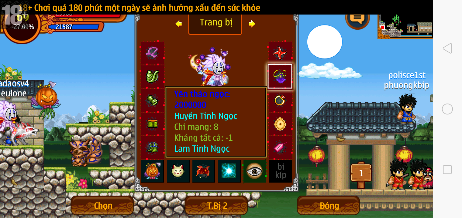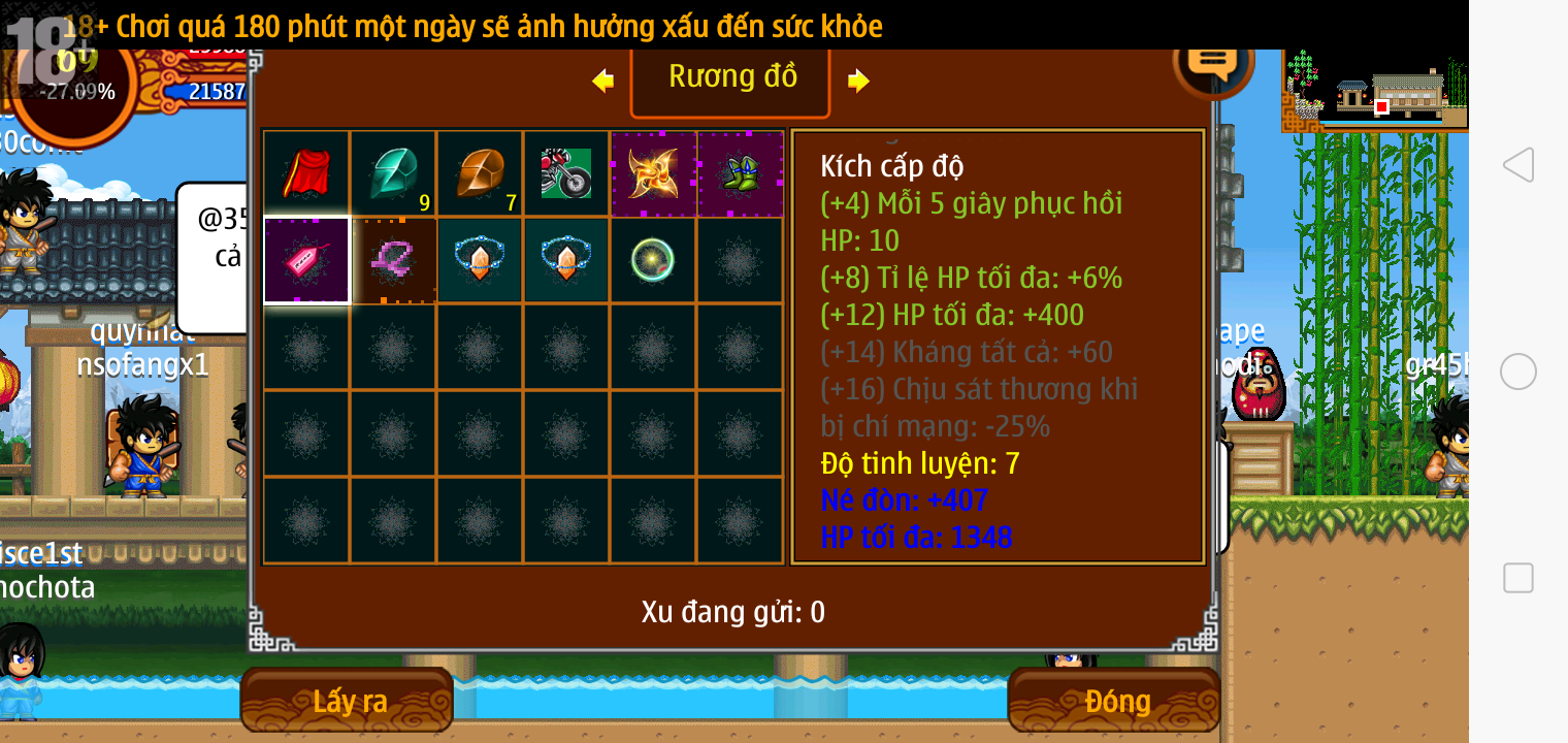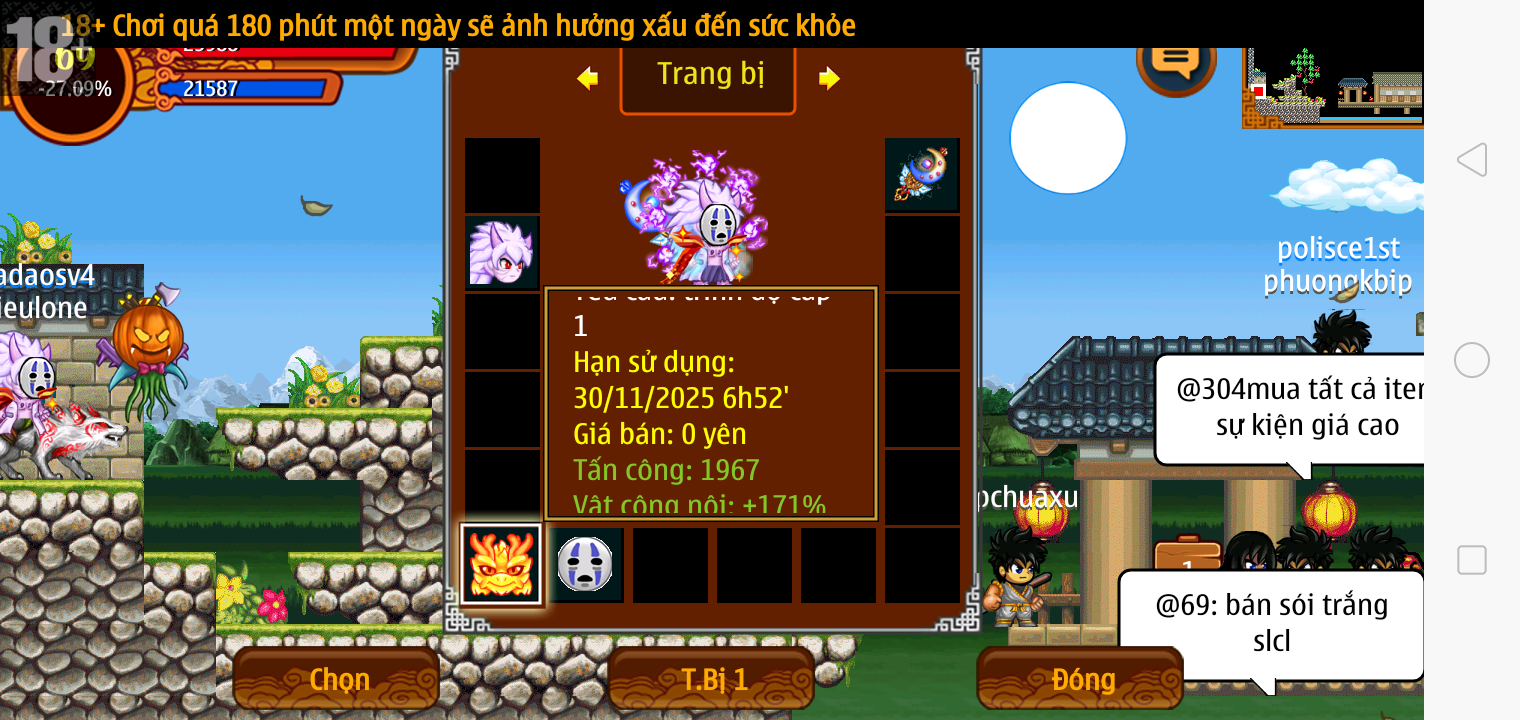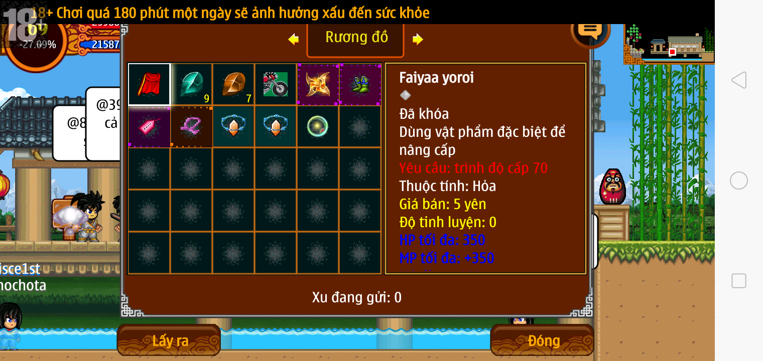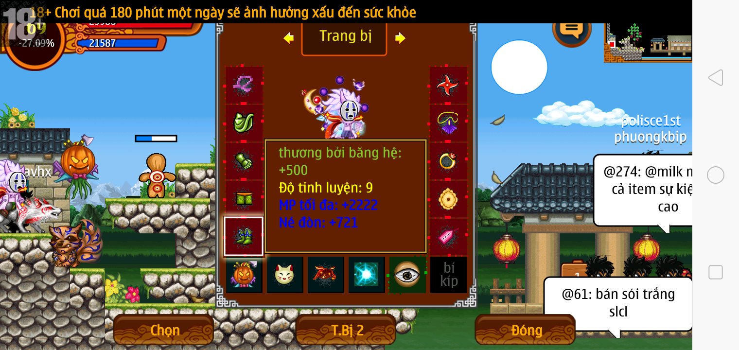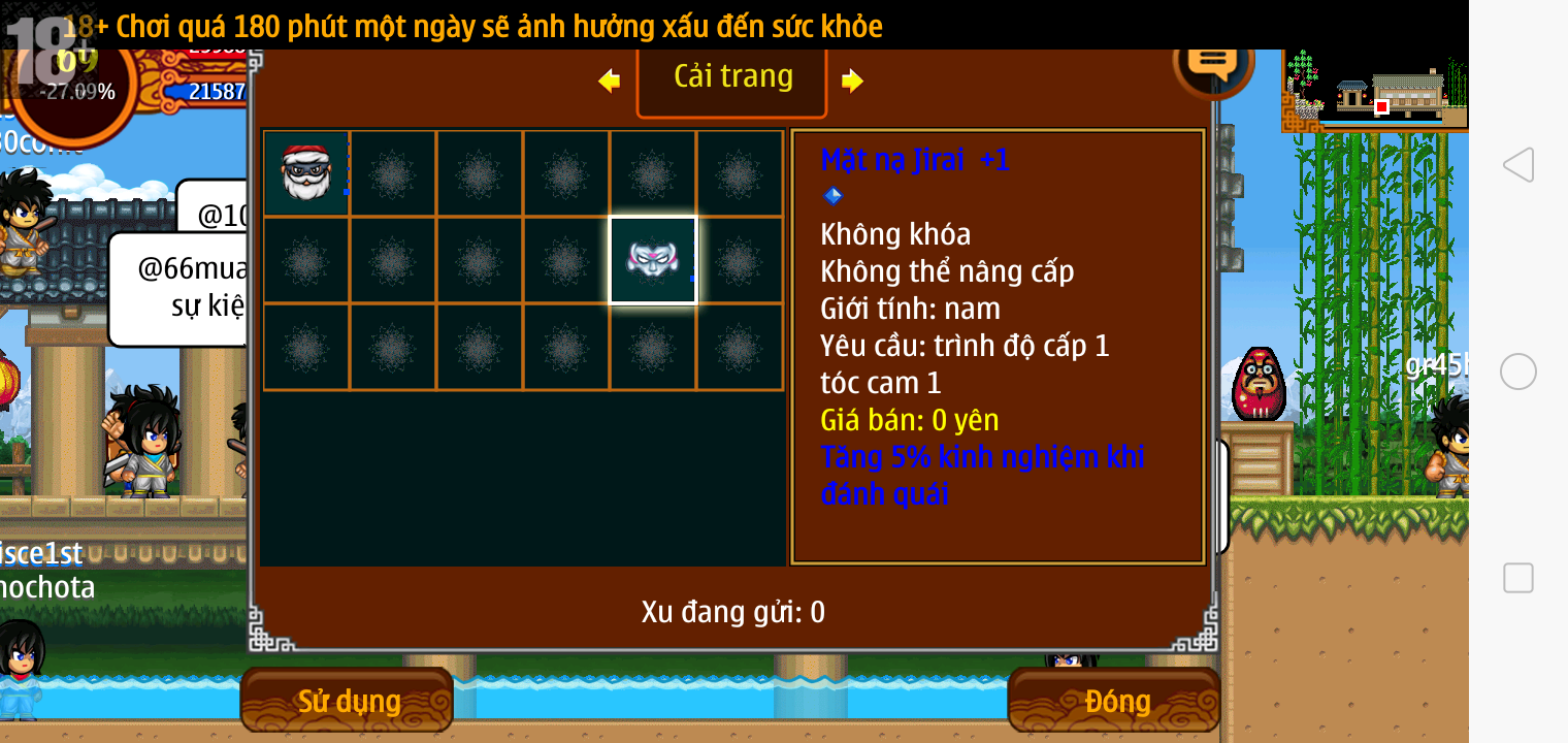 Thông tin: F16, ftl9, Sx 5* + Sói 5*2cm, tc, cx, ftbs9999, Vĩ thú v.v, 1nv, 104M Yên, CT vv: 2 cái, ~Jirai +4, Max sách, Max bánh,...VIP PRo
