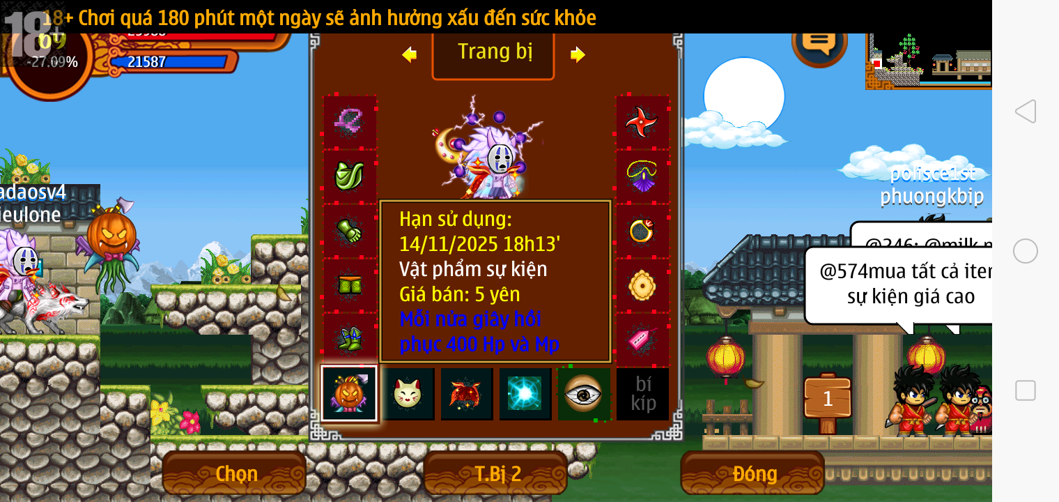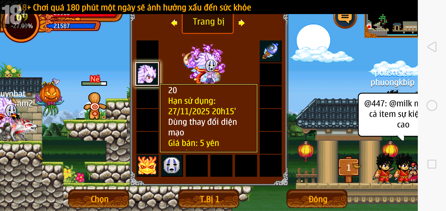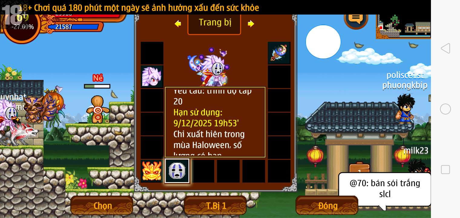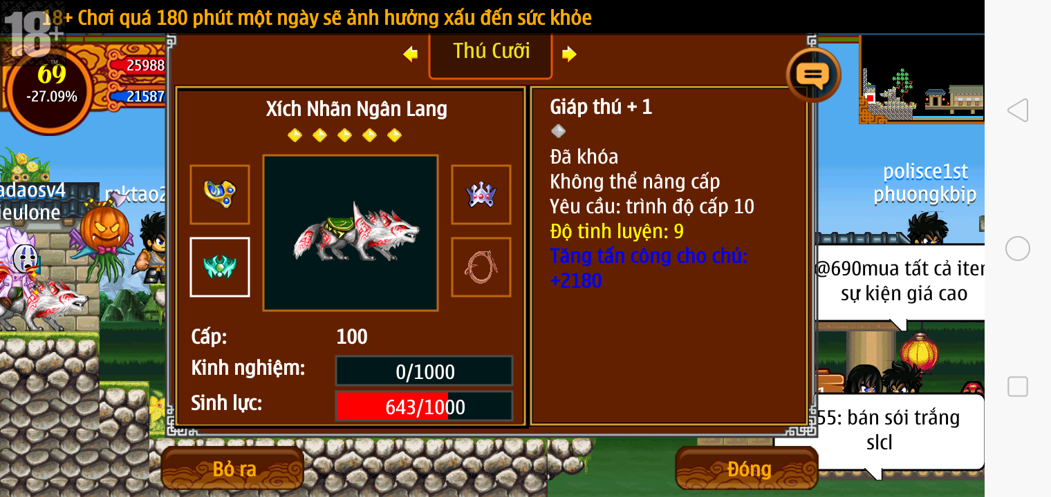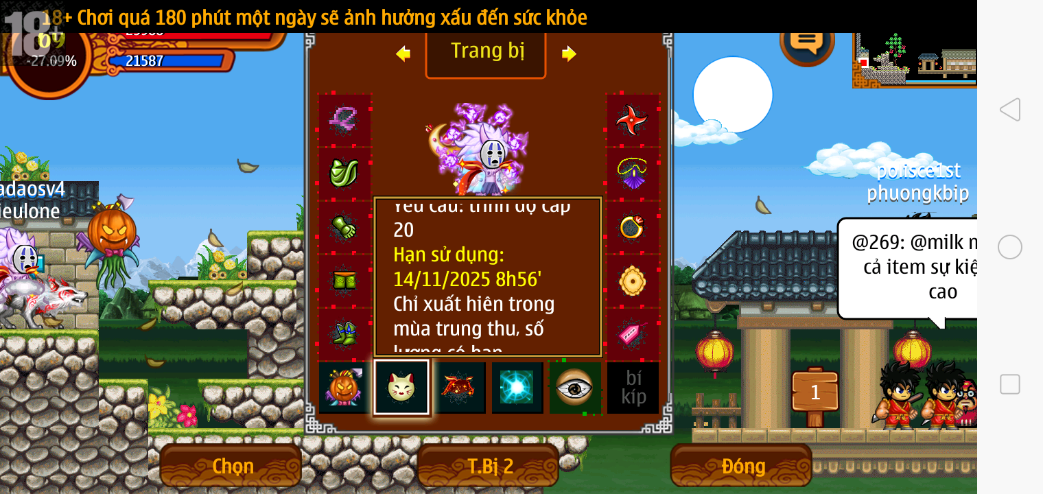 Thông tin: F16, ftl9, Sx 5* + Sói 5*2cm, tc, cx, ftbs9999, Vĩ thú v.v, 1nv, 104M Yên, CT vv: 2 cái, ~Jirai +4, Max sách, Max bánh,...VIP PRo