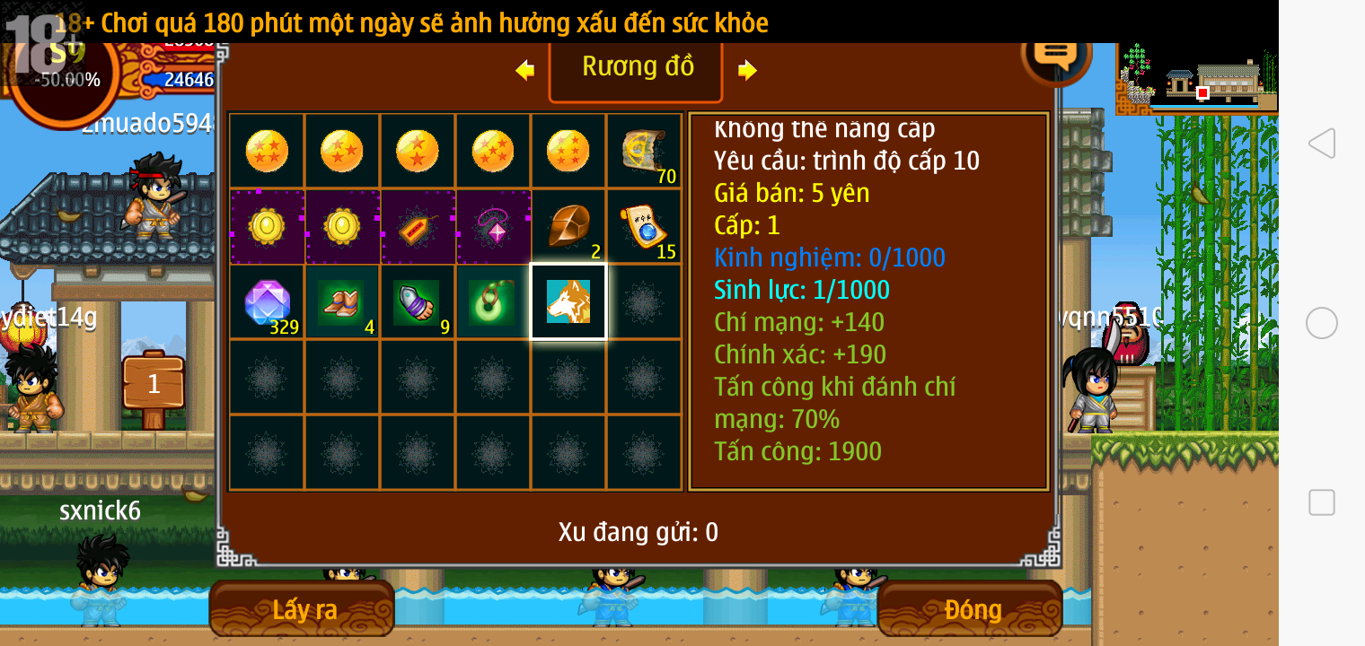 Thông tin: F14, ftl9, Mắt 5, HKL: 29/11, 2cm, tc, cx, ftbs999, Đồ gia hạn dài ngày, Vĩ thú .v.v, 658lg, 602M Yên, Max sách, Max bánh, Điểm mắt cao, CT vv: 4 cái..VIP PRO