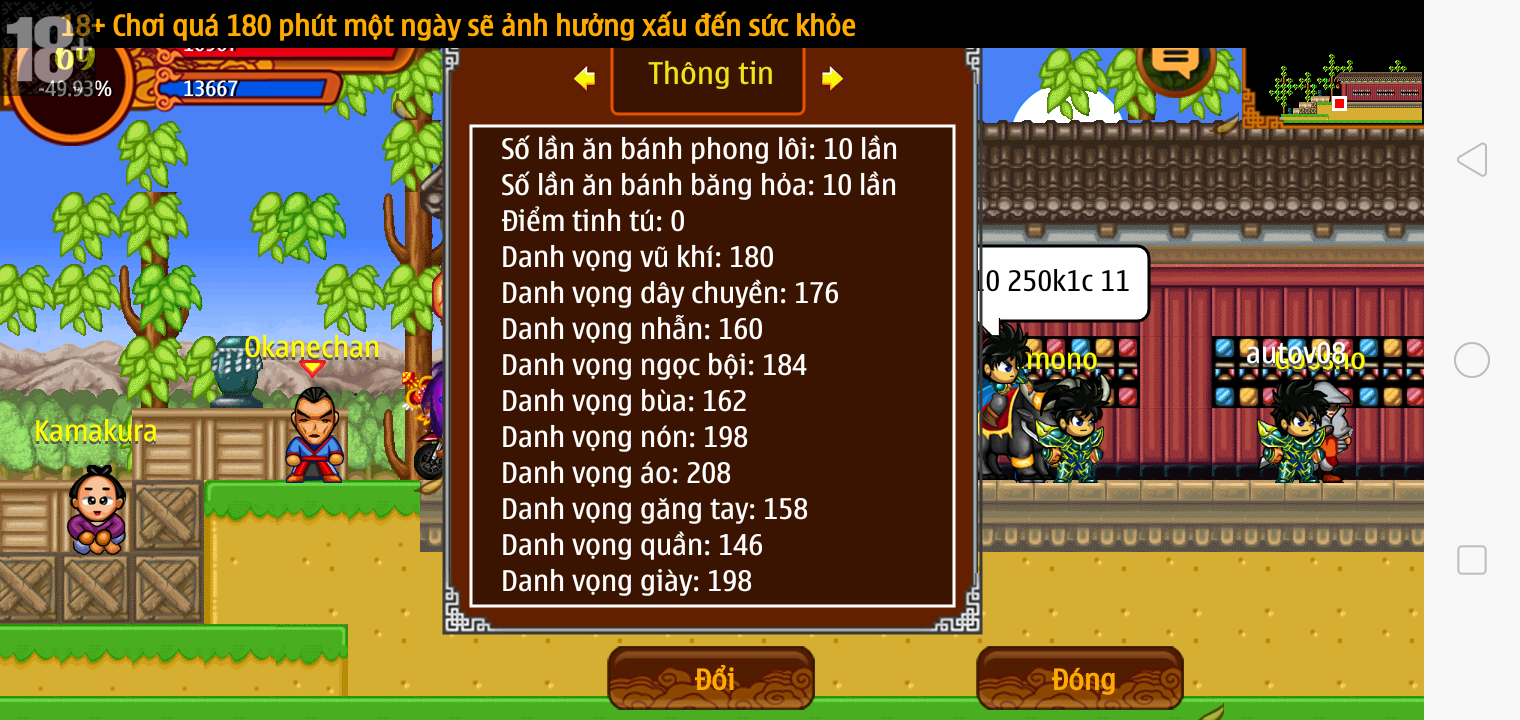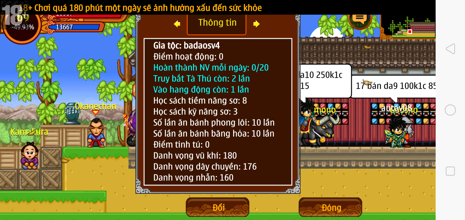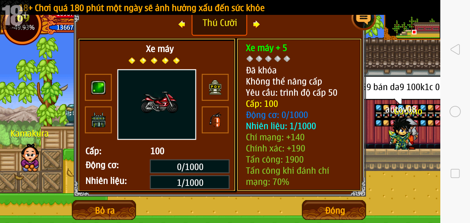 Thông tin: Vk14 tl6 3v1, f12, Sói 5*2cm, tc, cx, ftbs2222, Đồ Sk ngon, 167M Yên, Max sách, Max bánh,...VIP