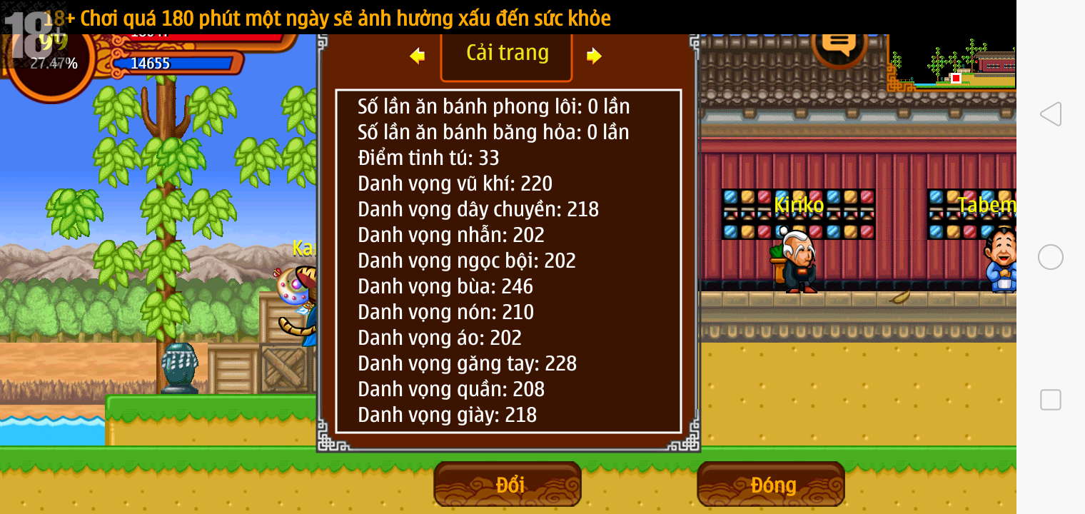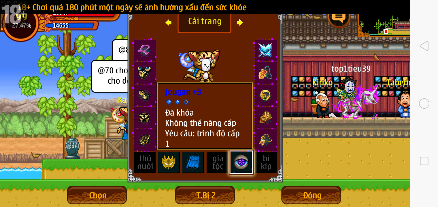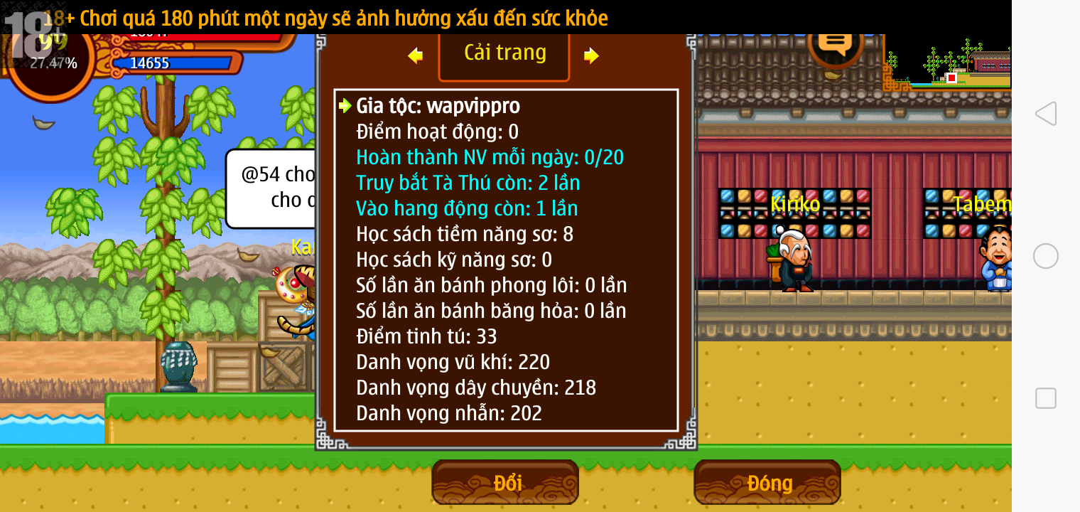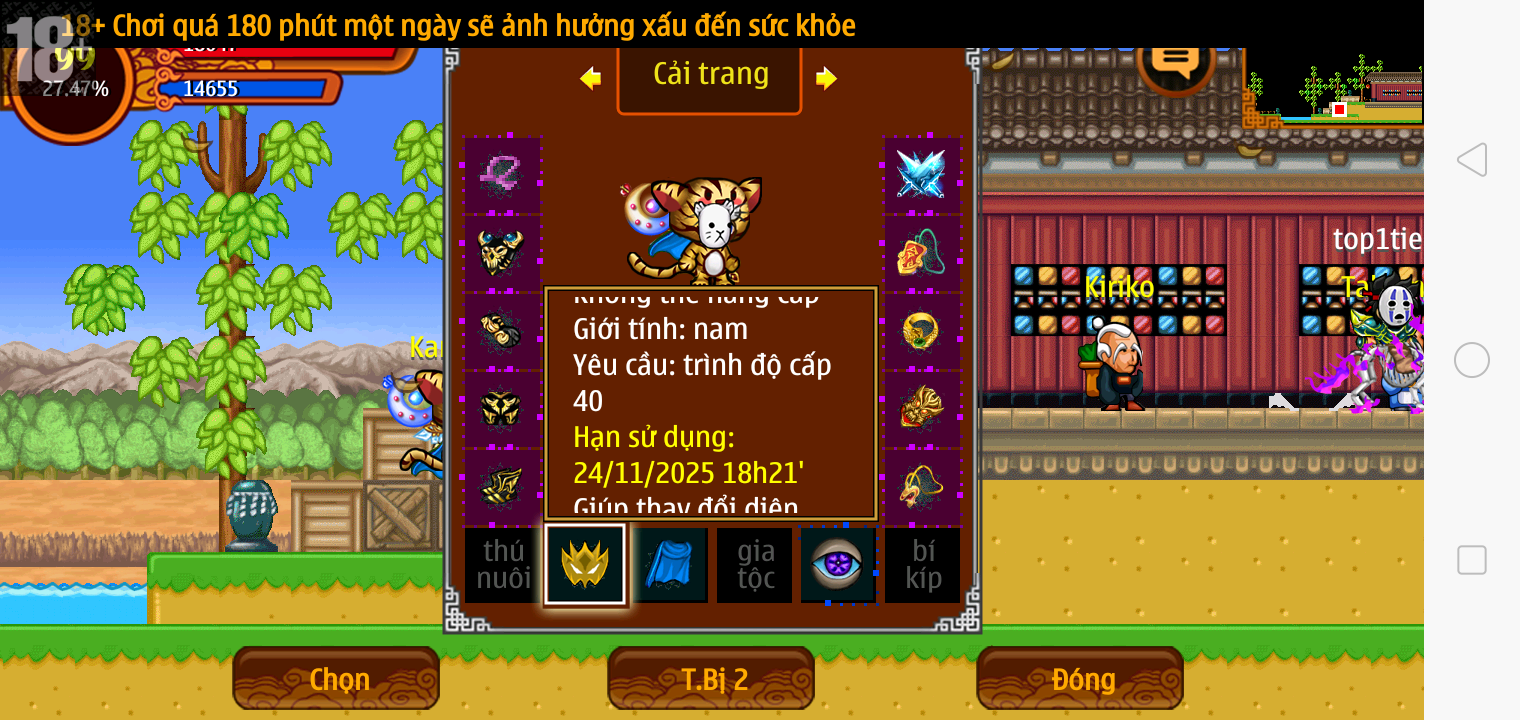 Thông tin: Vk14 tl6, f14, tl ngon, Mắt 3, Sói 5*2cm, mp, cx, ftbs4446, 22M Yên, nhiều đồ, 8 sách,...VIP