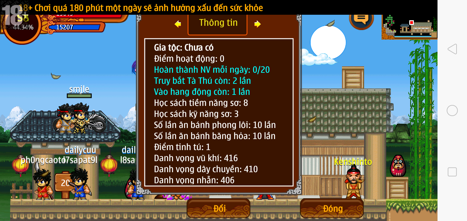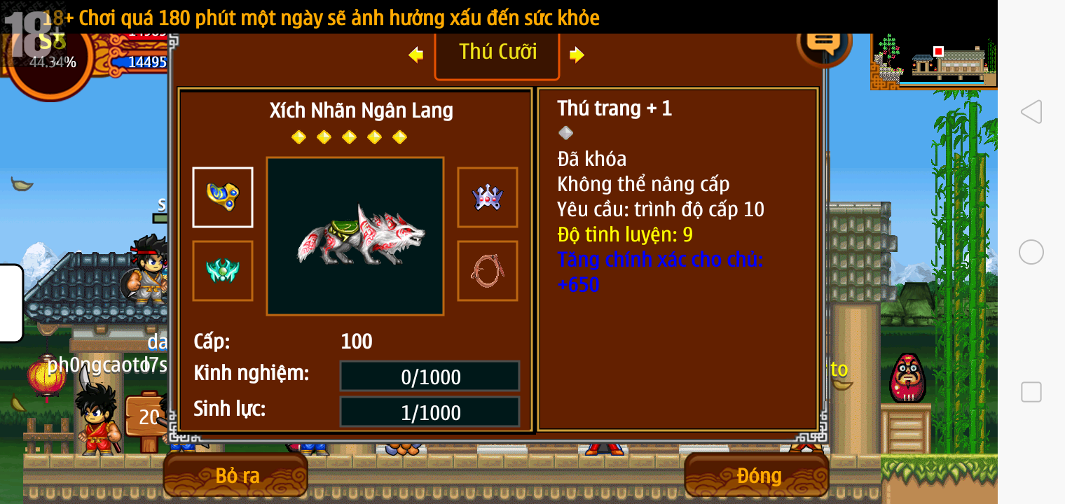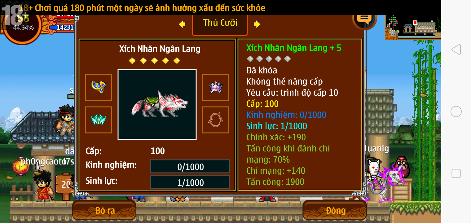 Thông tin: Vk14 tl9 1v4, ~f14, ftl6,9, GT: 372%, CT vv: 1 cái, Ct2: 27/11, Sói 5*2cm, tc, cx, ftbs7779, 1,5 Tỷ Yên, Max sách, Max bánh,...Sv4