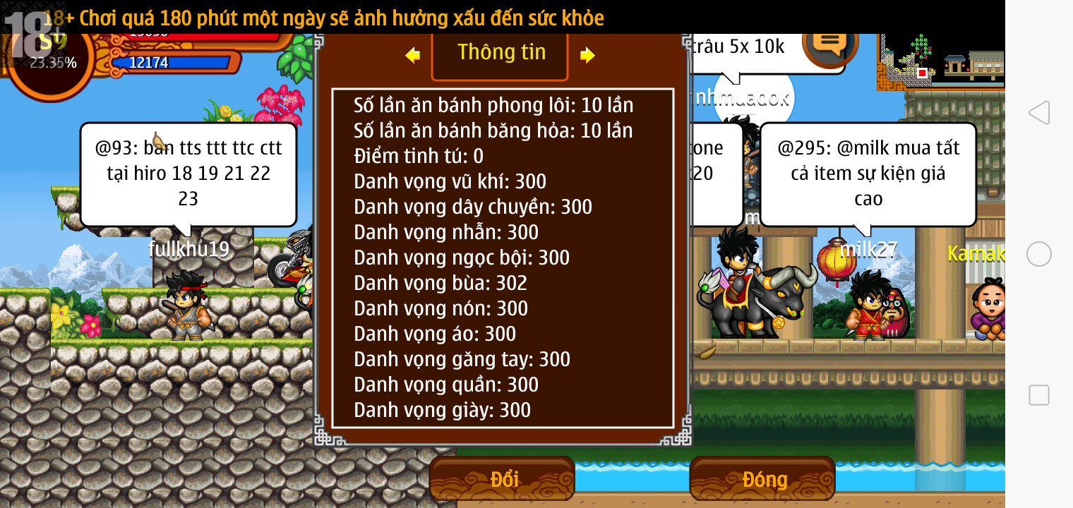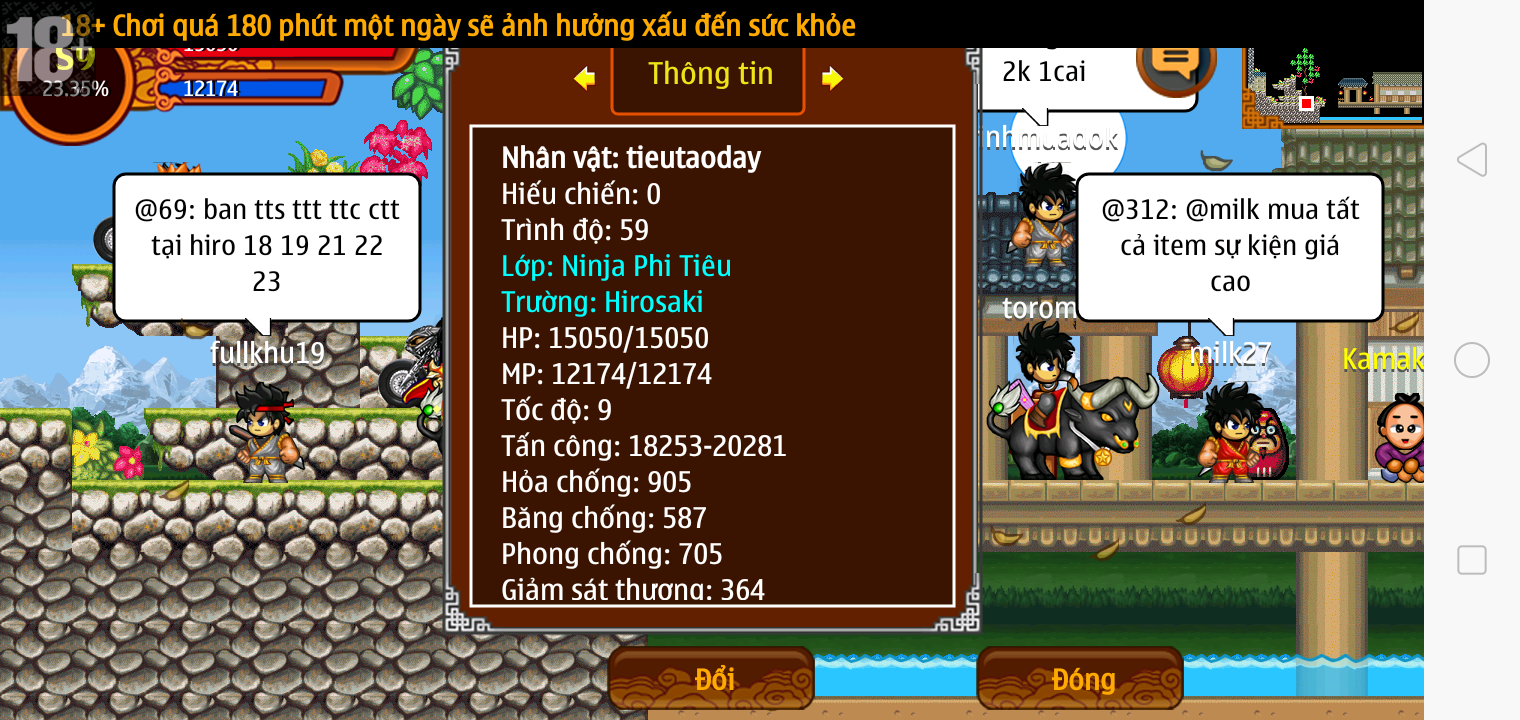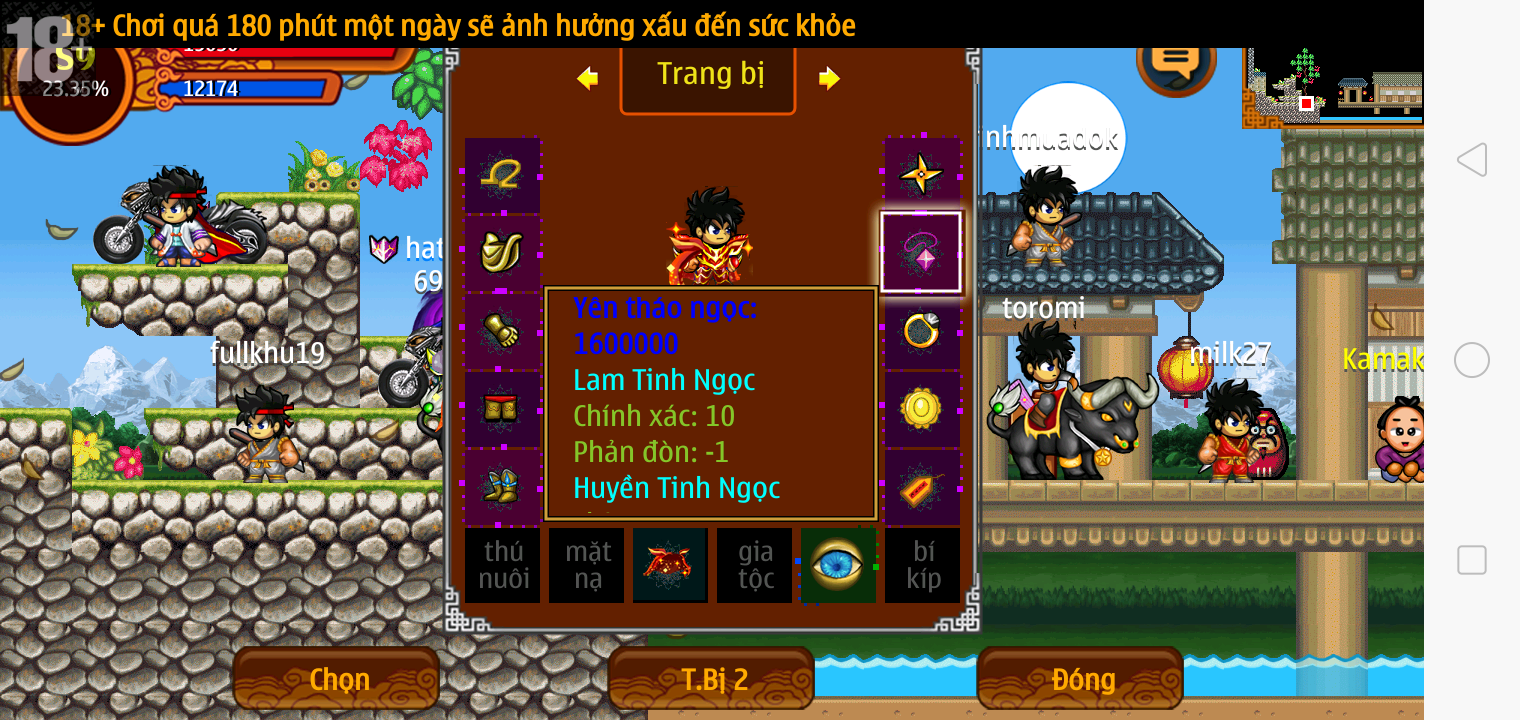Thông tin: ~f14, ftl6, Yoroi tl9 vv, Ngọc: 1v4, 4v2, 7v1, Trâu đen 2cm, né, tc, ftbs6689, 1 nhân vật, Max sách, Max bánh, Đ.mắt cao,...VIP PRO