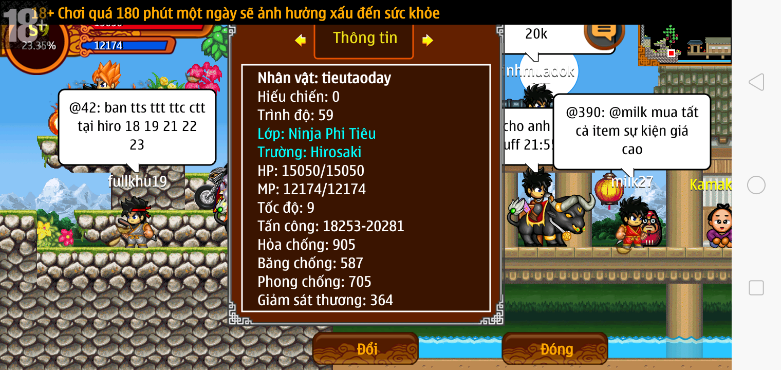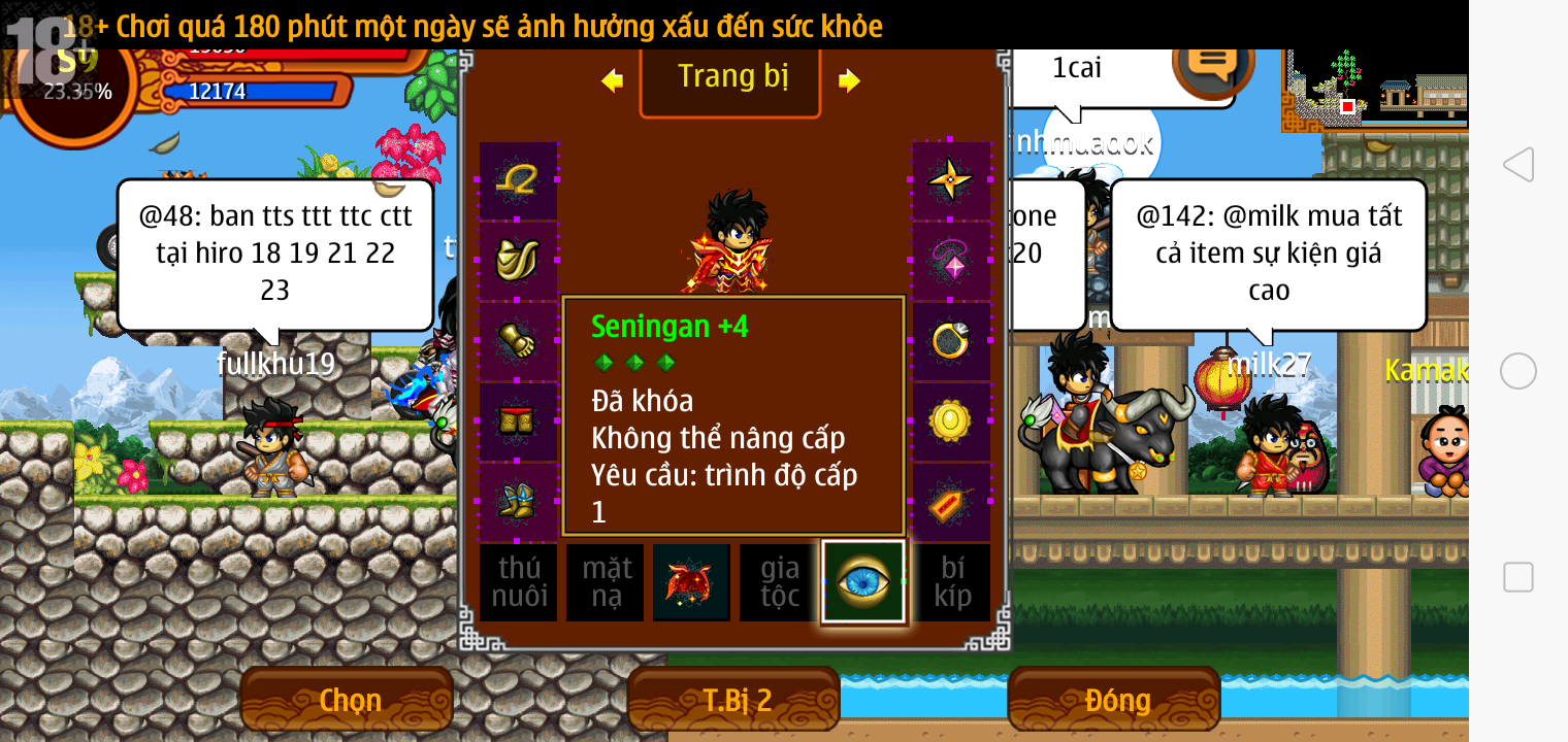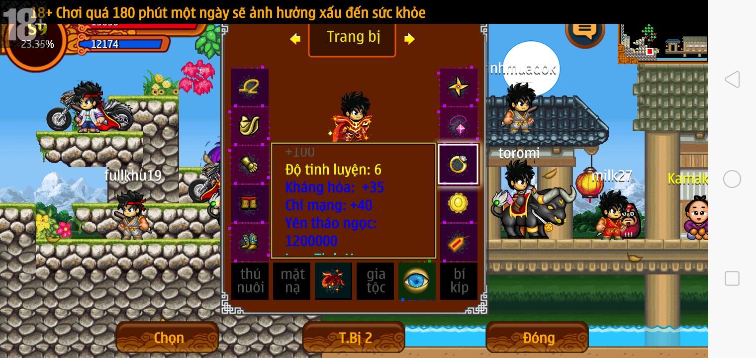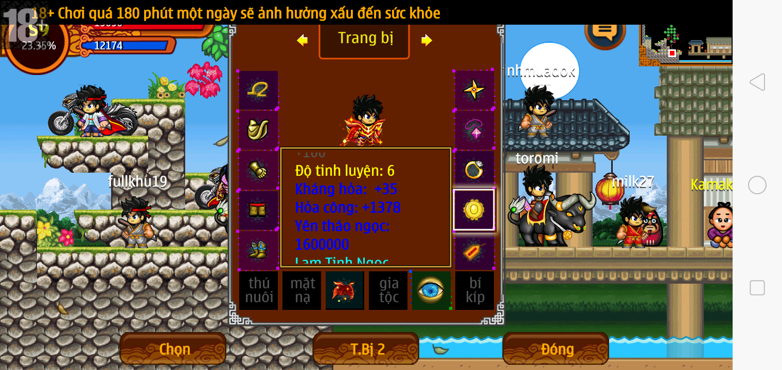 Thông tin: ~f14, ftl6, Yoroi tl9 vv, Ngọc: 1v4, 4v2, 7v1, Trâu đen 2cm, né, tc, ftbs6689, 1 nhân vật, Max sách, Max bánh, Đ.mắt cao,...VIP PRO