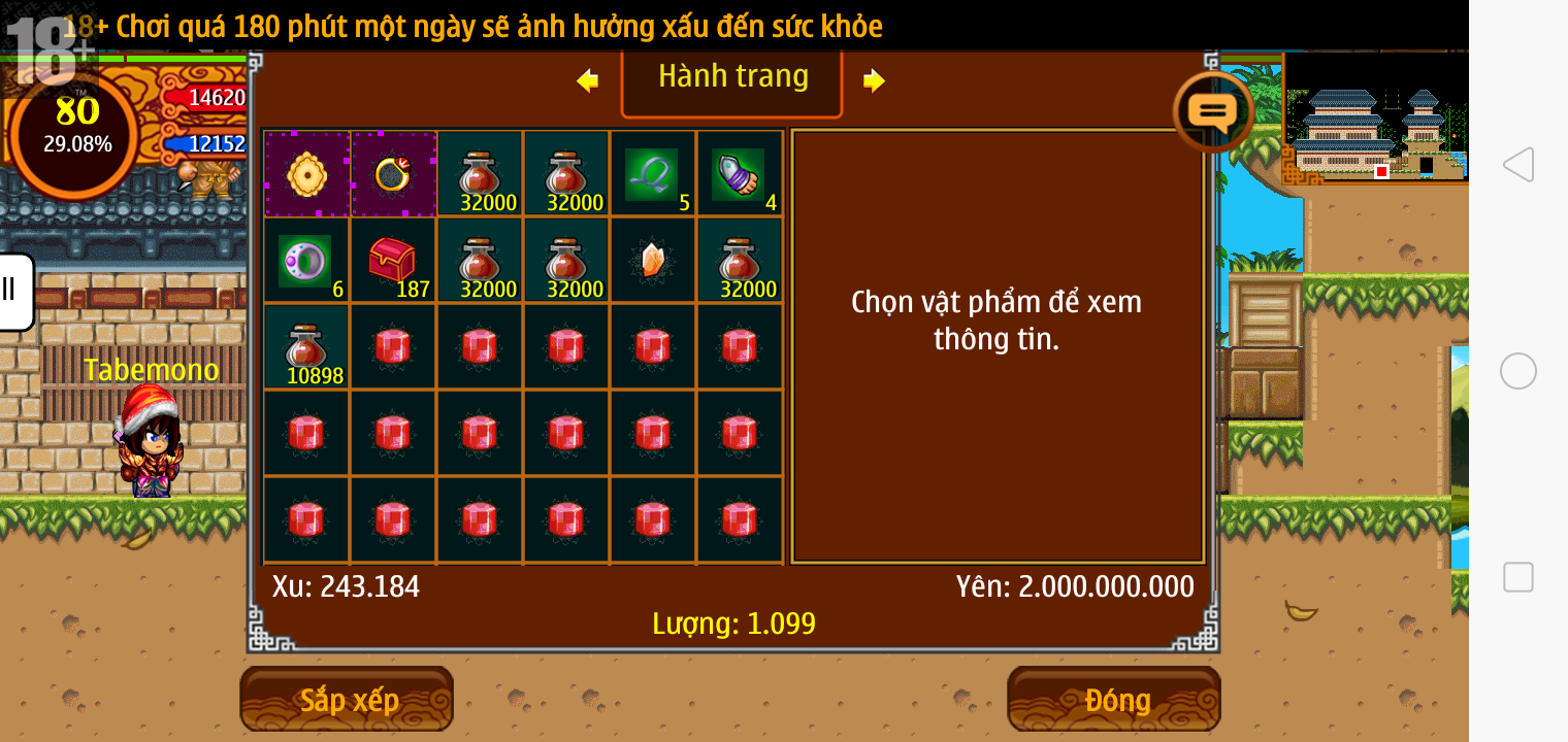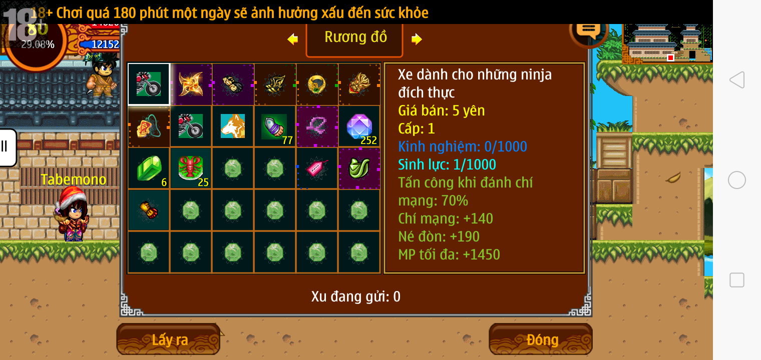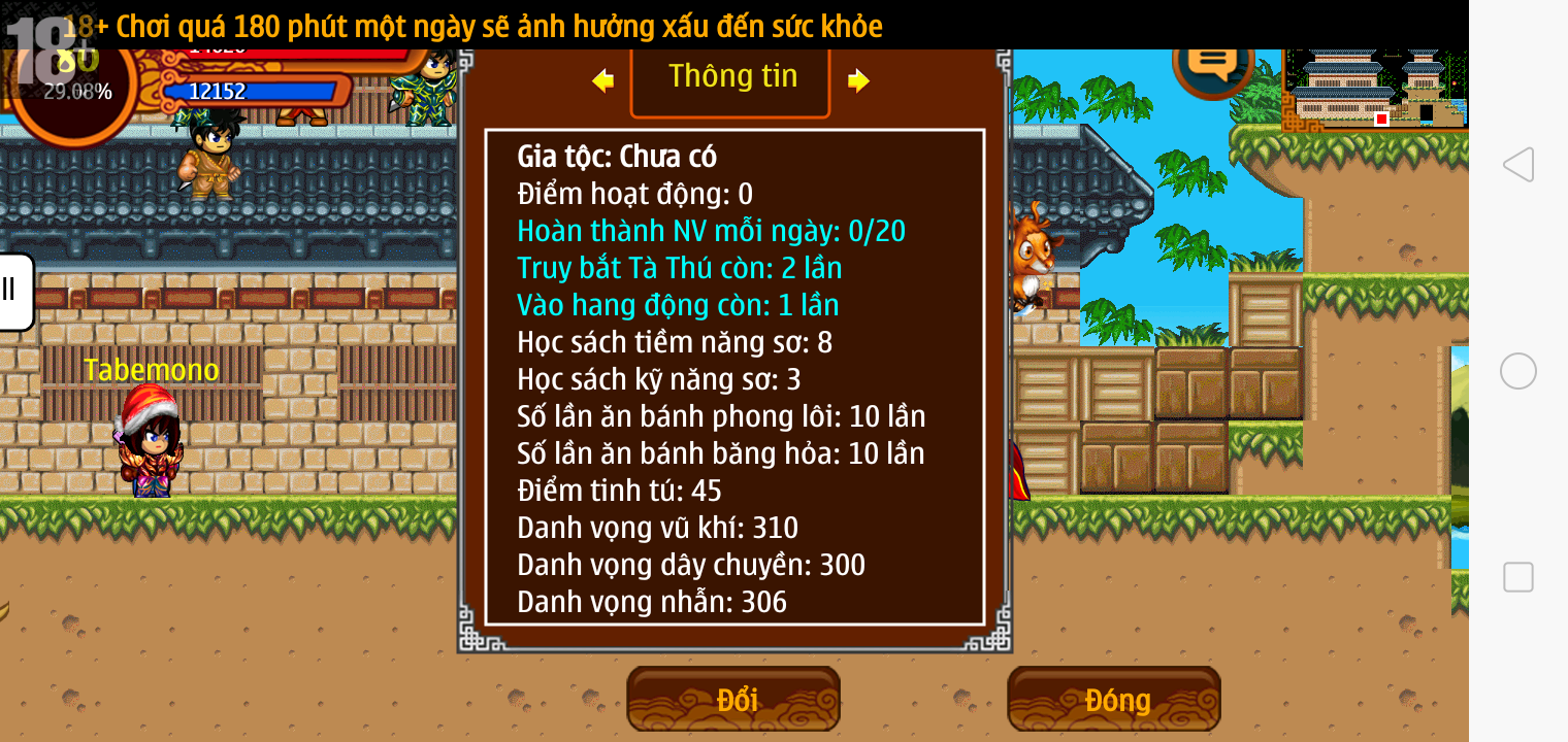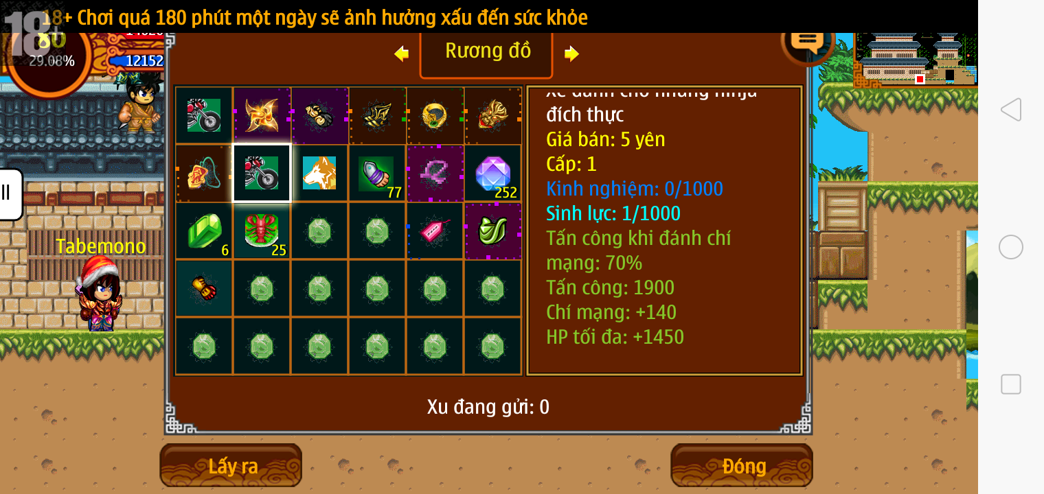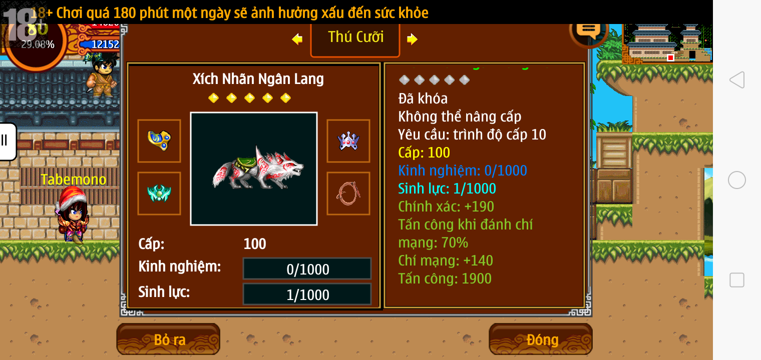 Thông tin: Vk16 tl9, ~f16, Mắt 3, x2 Sx5* + Sói 5*2cm, tc, cx, ftbs3556, 1099 lg, 2 Tỷ, Max sách, Max bánh, VIP PRO