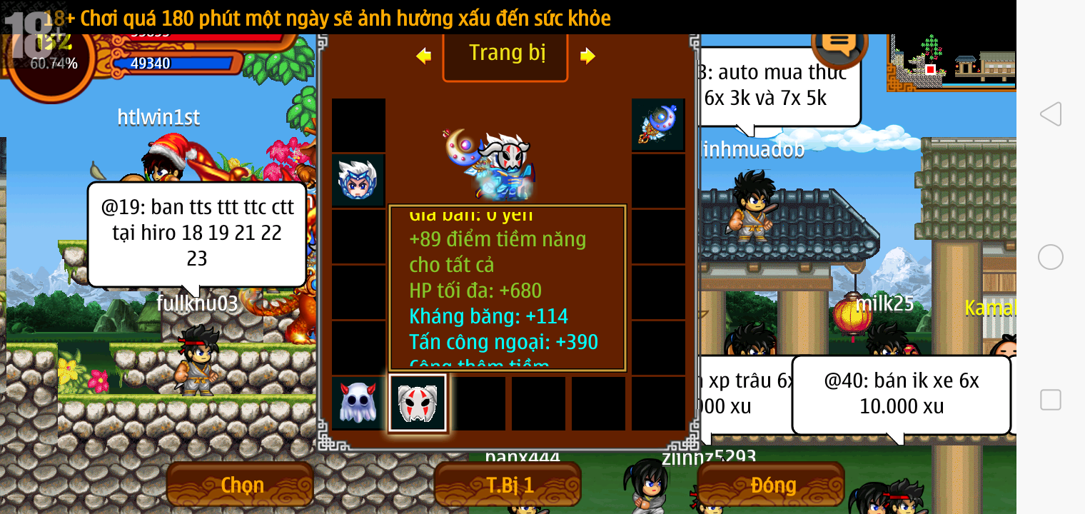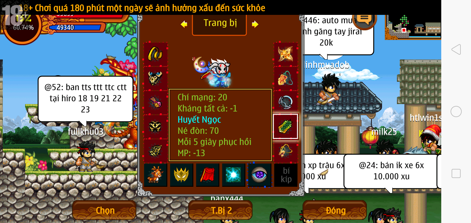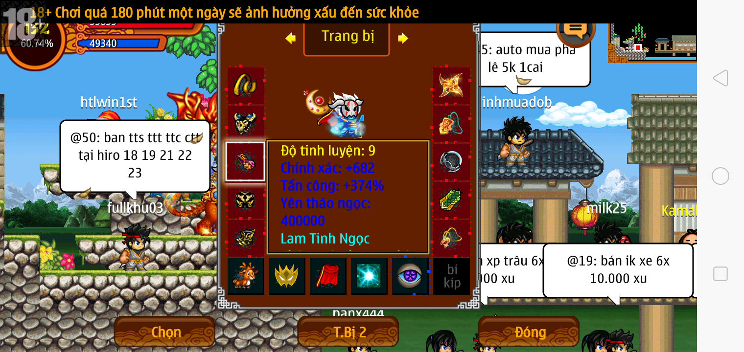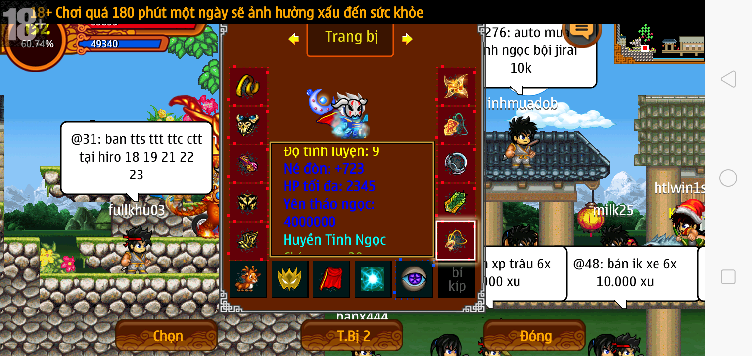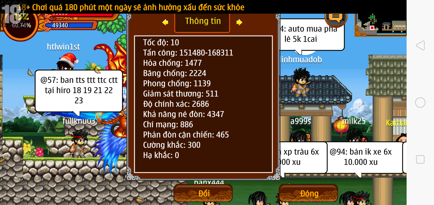 Thông tin: f16, ftl9, Gậy v.v, Ngọc: 6v6 1v5 1v4, Mắt 3, Sói + XM 5*2cm, tc, cx(kp), ftbs9999 (6666), ~2 Tỷ Yên, CT vv: 1 cái, Thẻ đổi tên, PT: Tiêu 111...VIP