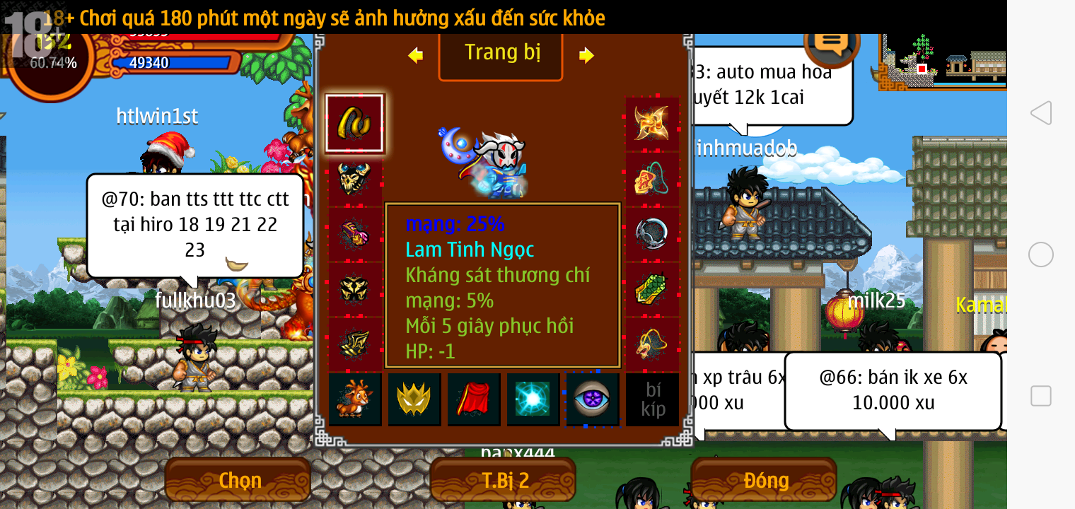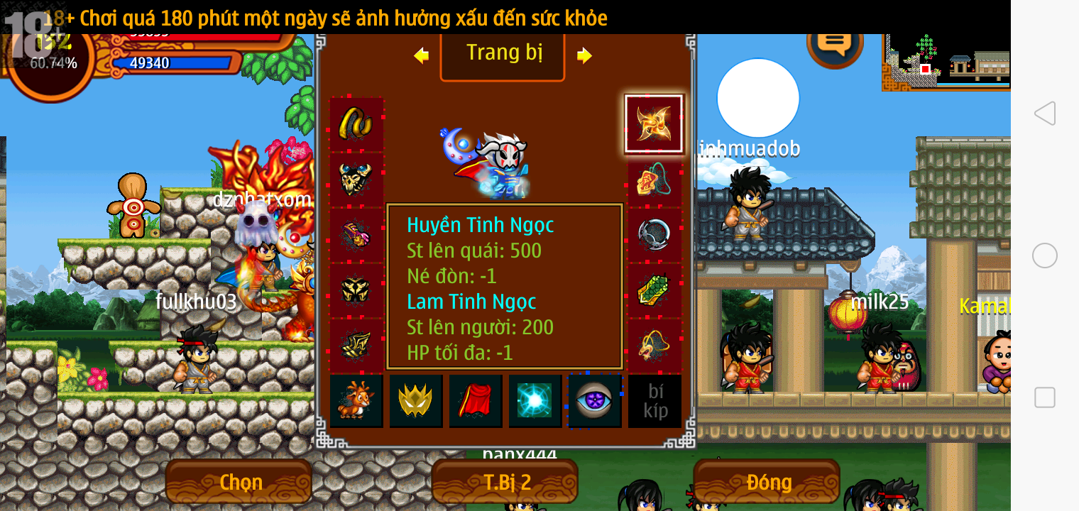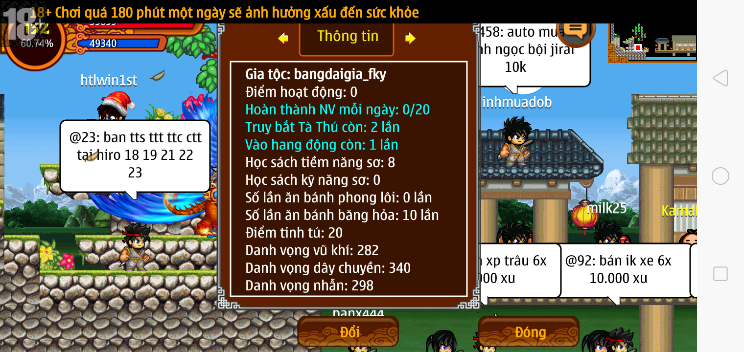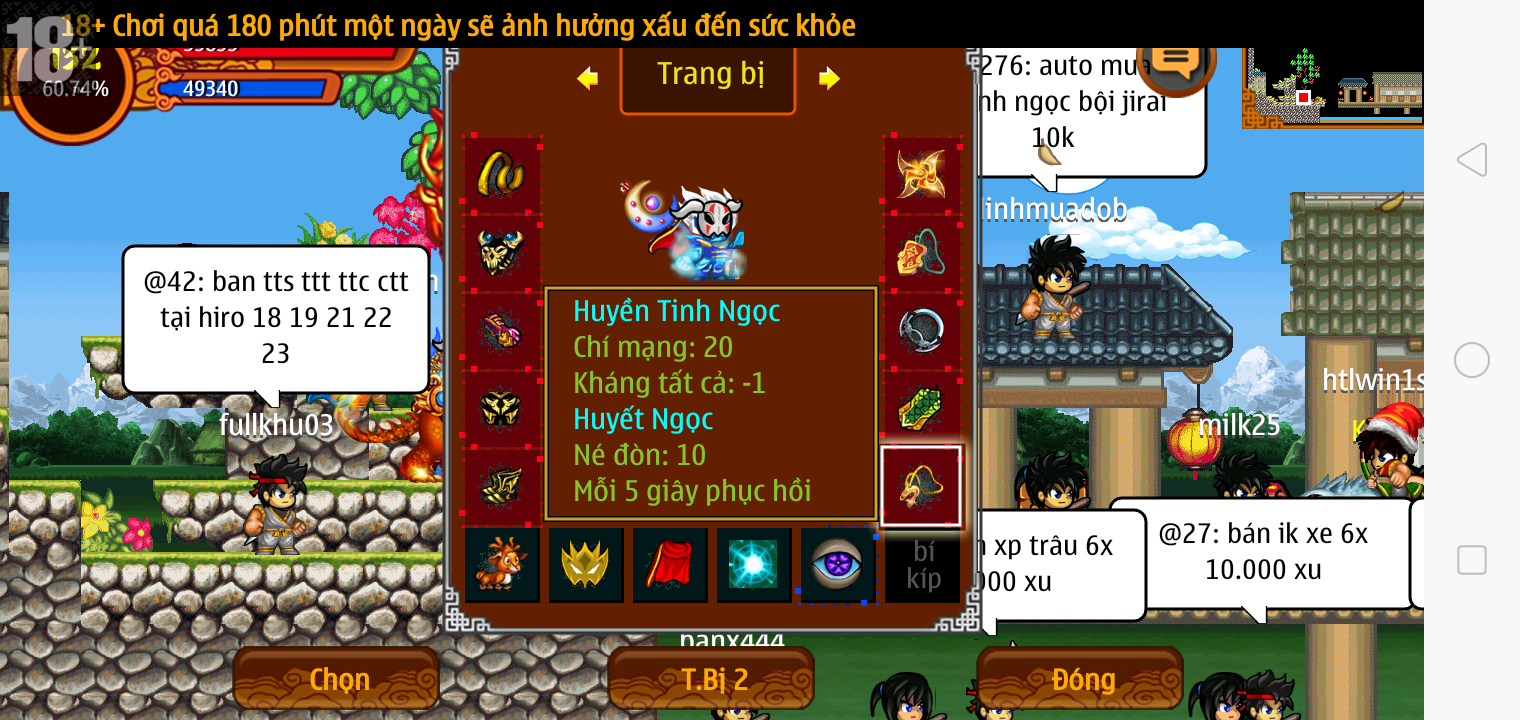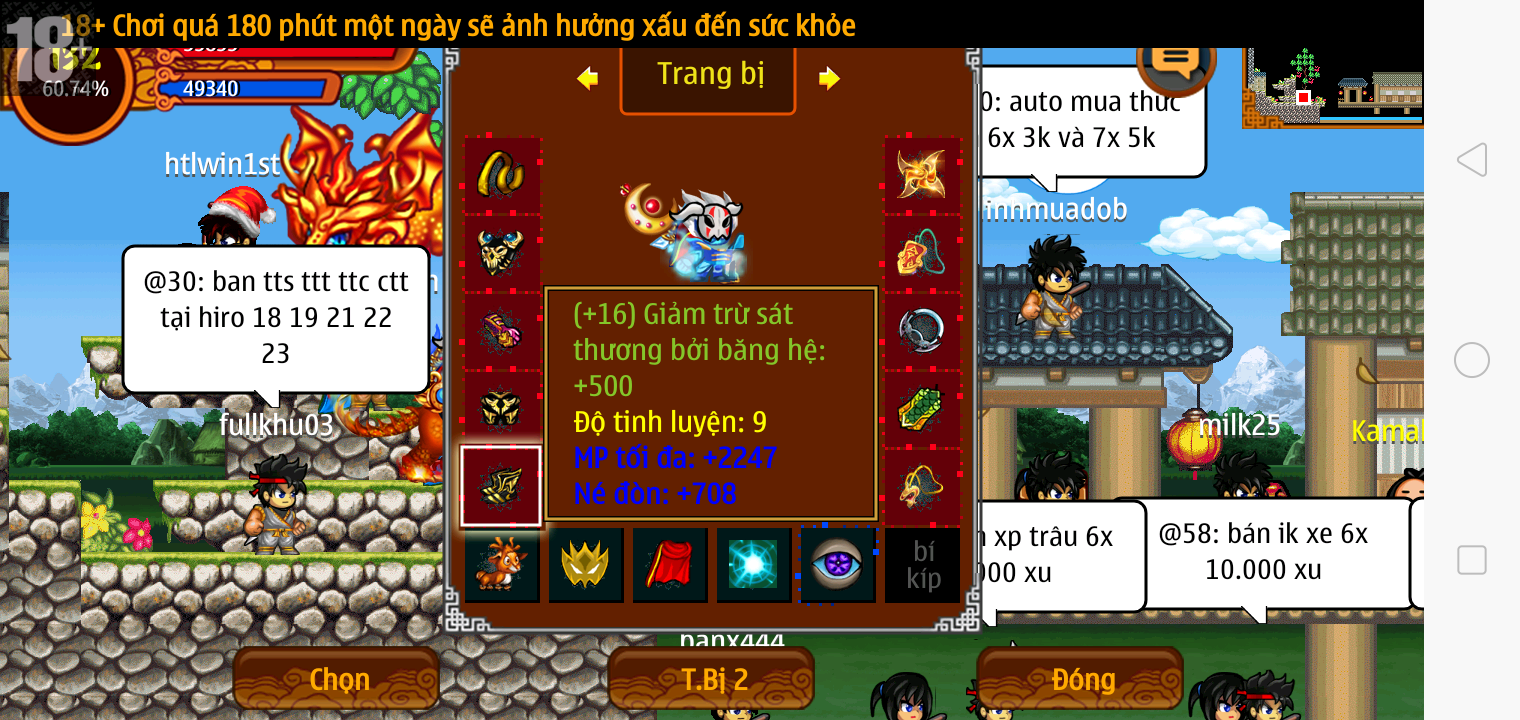Thông tin: f16, ftl9, Gậy v.v, Ngọc: 6v6 1v5 1v4, Mắt 3, Sói + XM 5*2cm, tc, cx(kp), ftbs9999 (6666), ~2 Tỷ Yên, CT vv: 1 cái, Thẻ đổi tên, PT: Tiêu 111...VIP