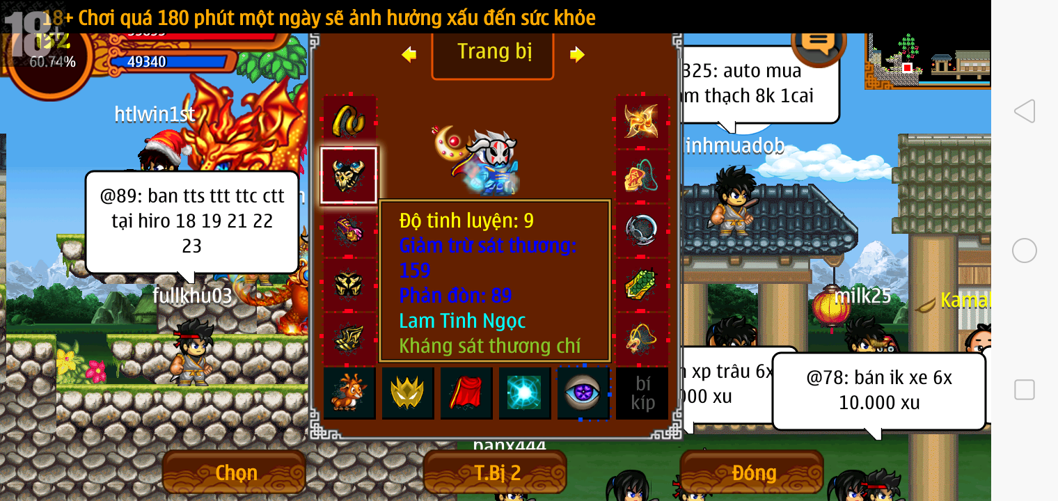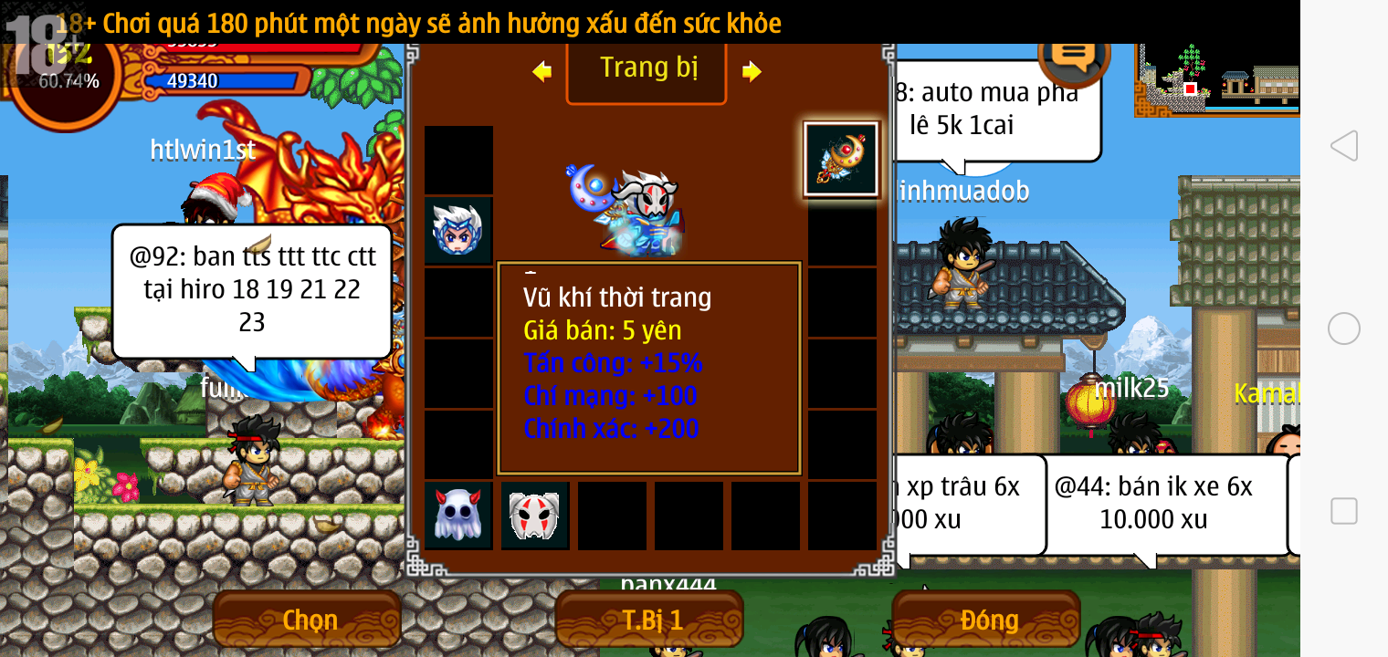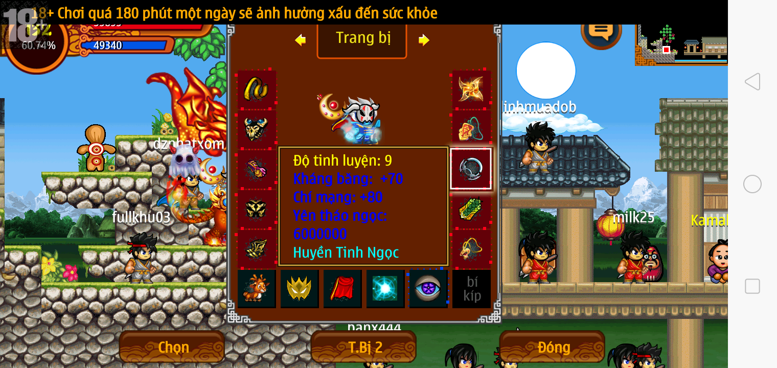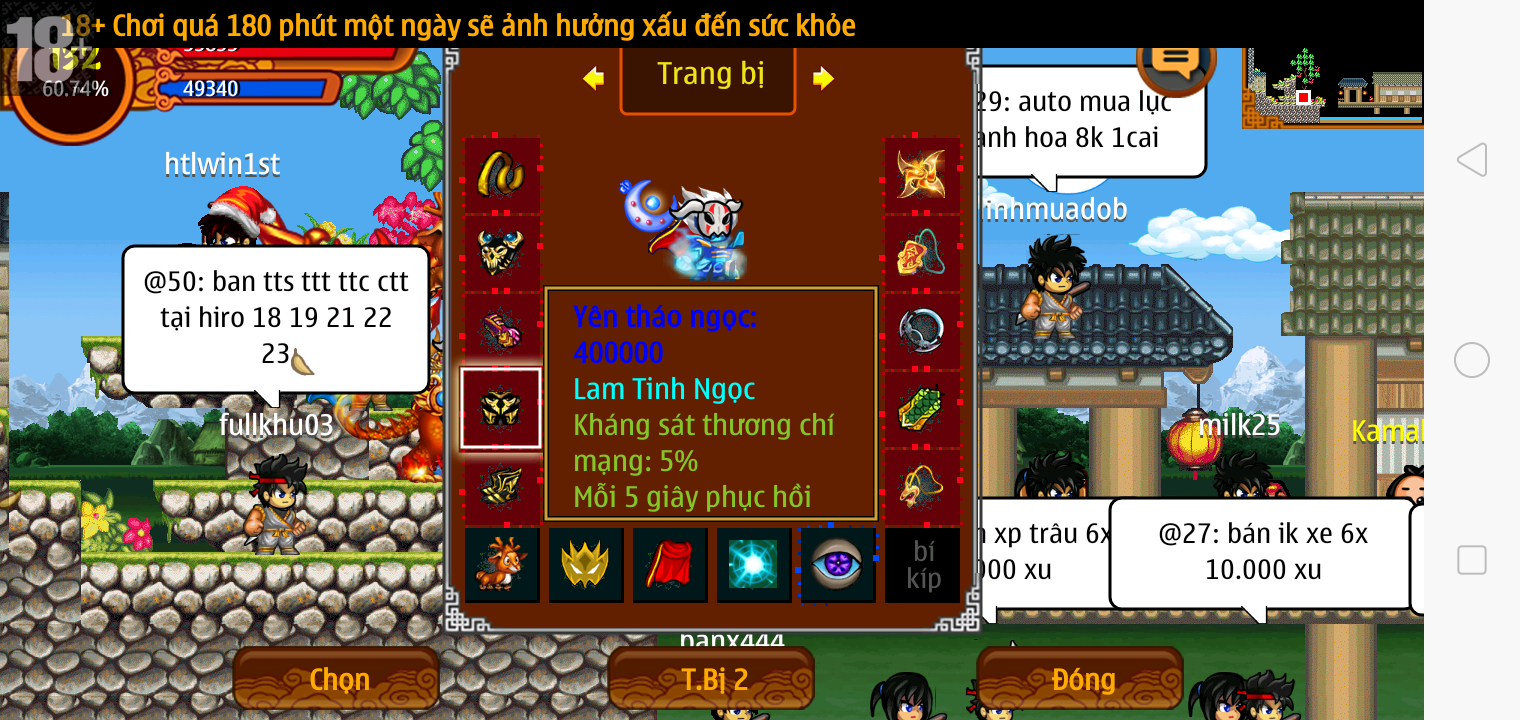 Thông tin: f16, ftl9, Gậy v.v, Ngọc: 6v6 1v5 1v4, Mắt 3, Sói + XM 5*2cm, tc, cx(kp), ftbs9999 (6666), ~2 Tỷ Yên, CT vv: 1 cái, Thẻ đổi tên, PT: Tiêu 111...VIP