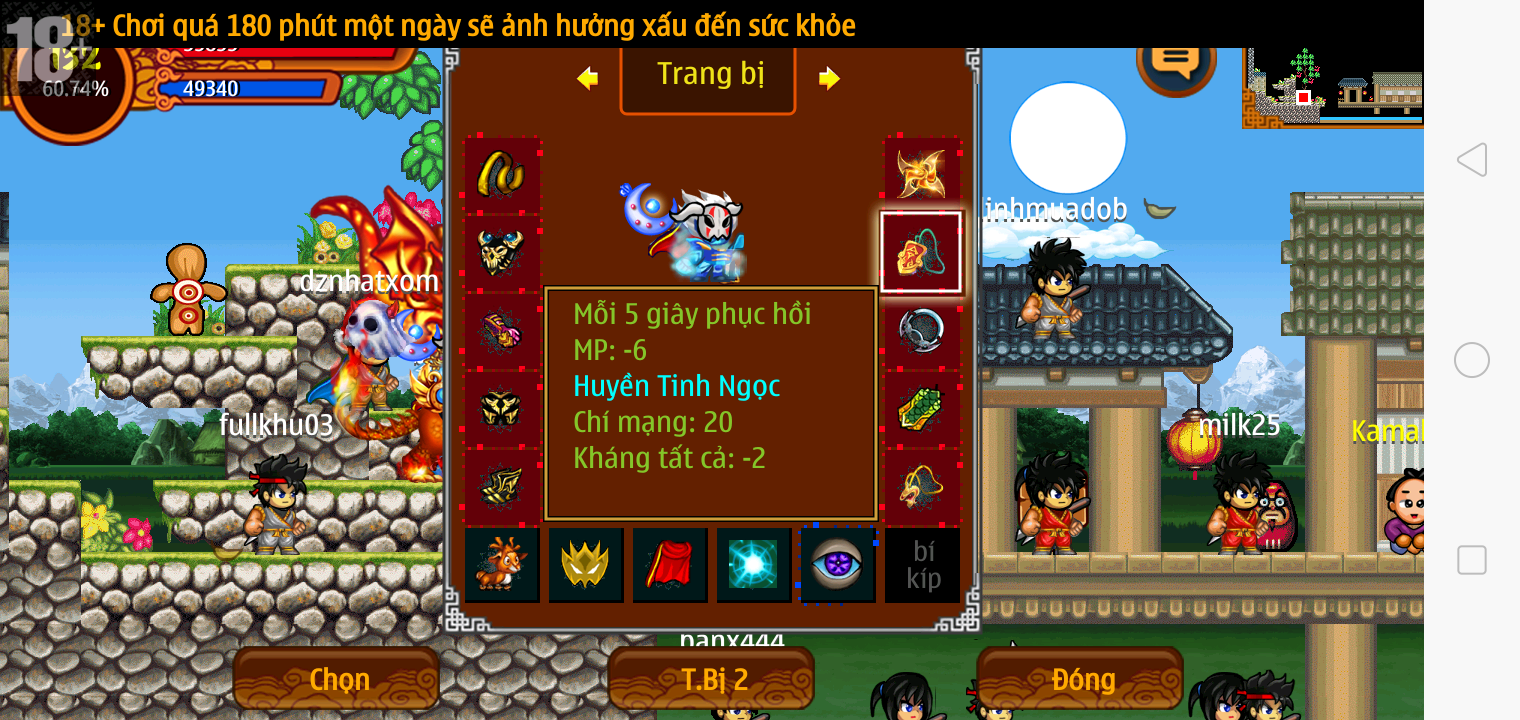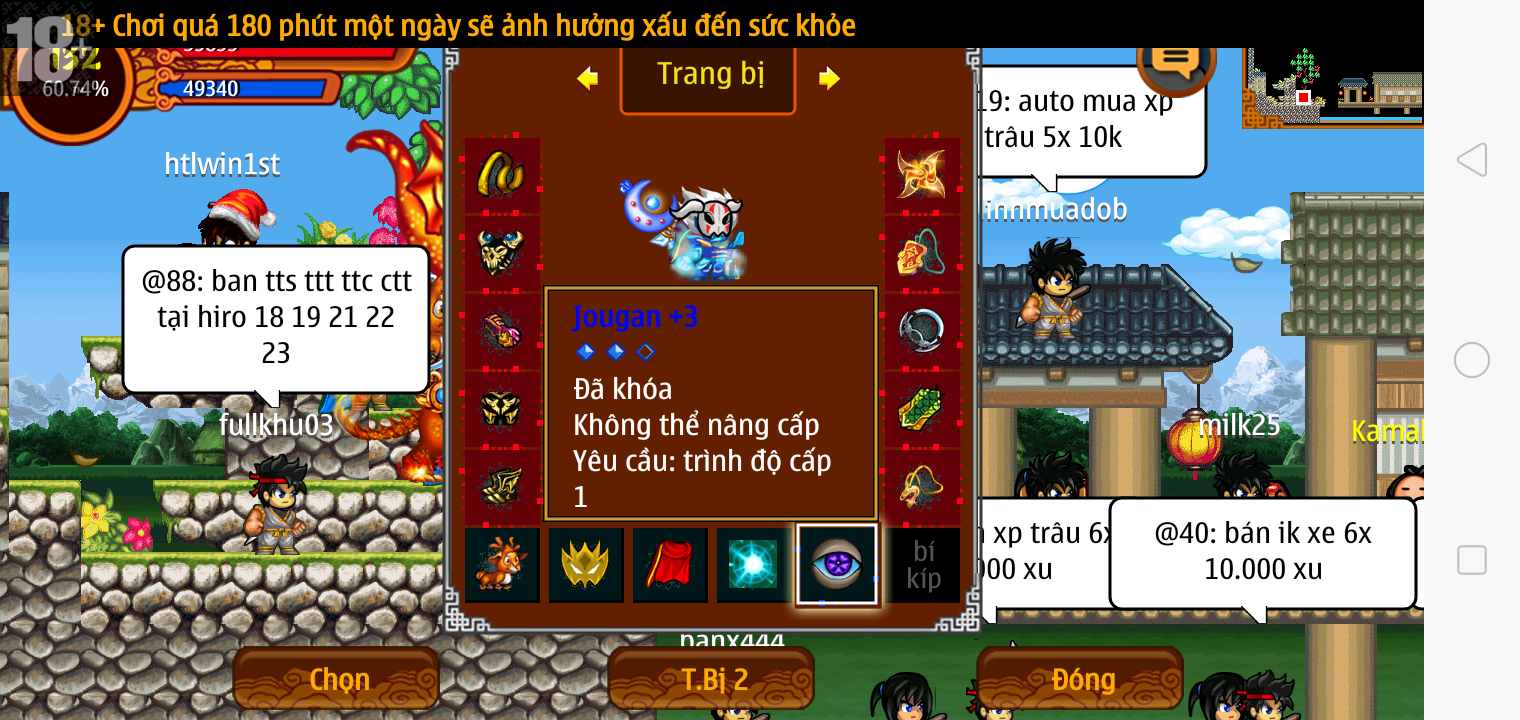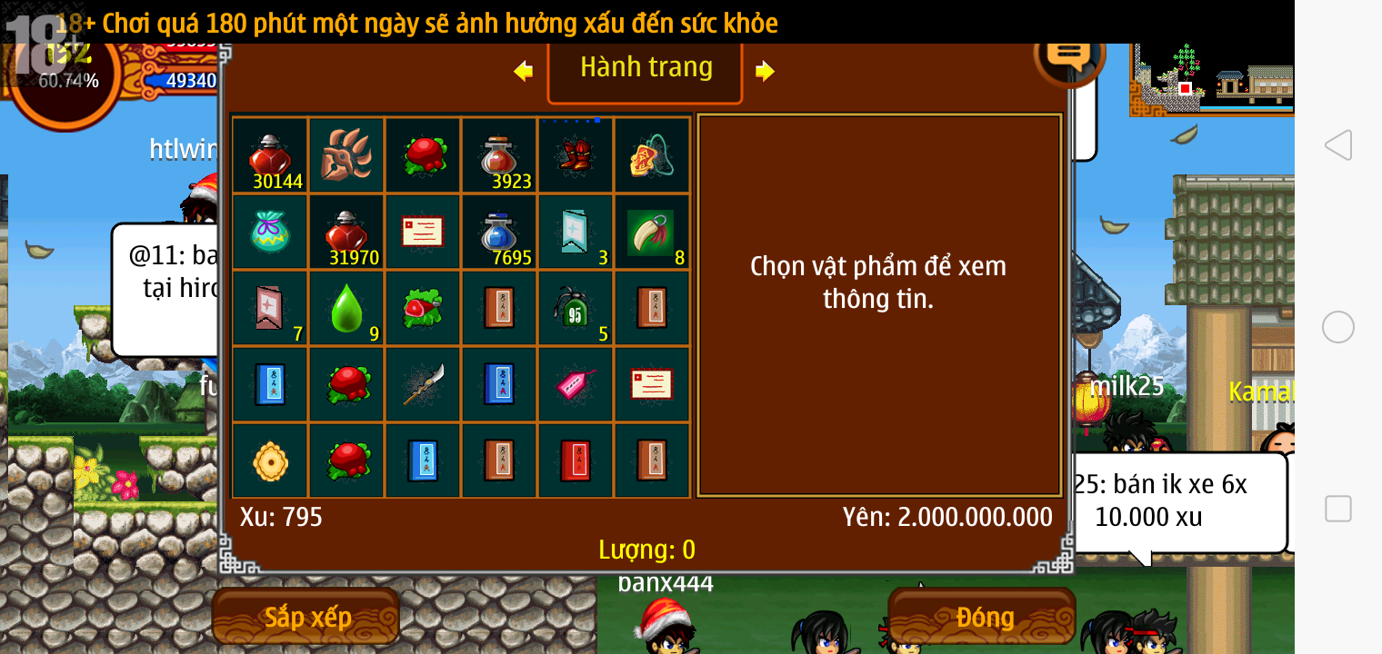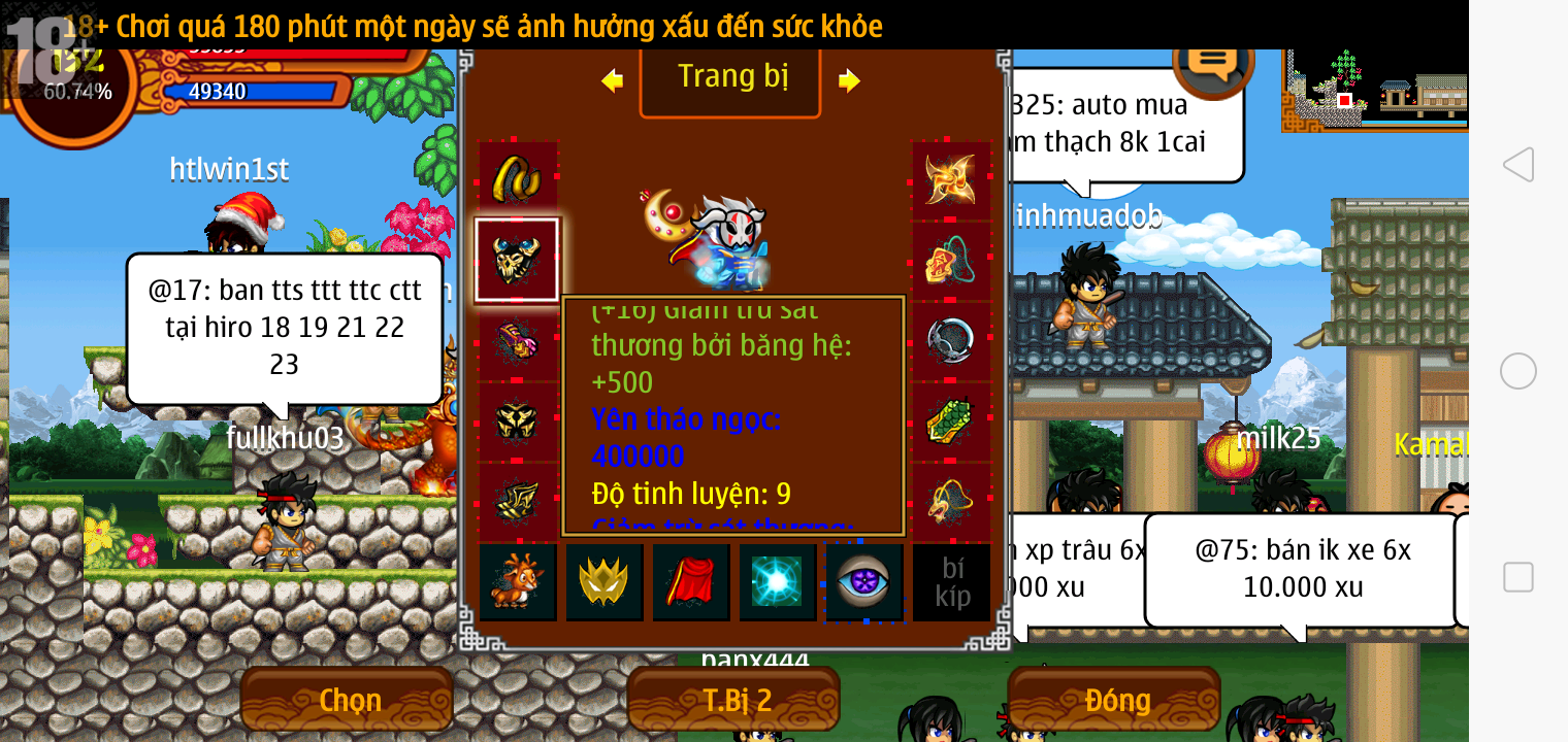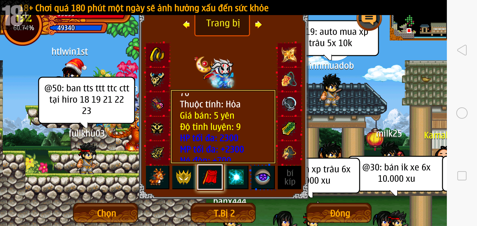 Thông tin: f16, ftl9, Gậy v.v, Ngọc: 6v6 1v5 1v4, Mắt 3, Sói + XM 5*2cm, tc, cx(kp), ftbs9999 (6666), ~2 Tỷ Yên, CT vv: 1 cái, Thẻ đổi tên, PT: Tiêu 111...VIP