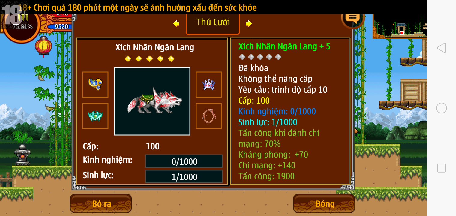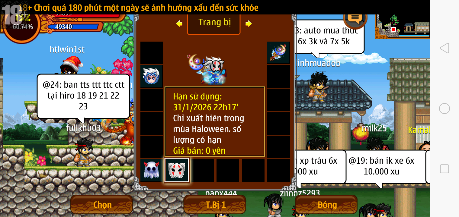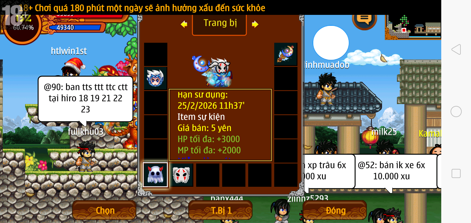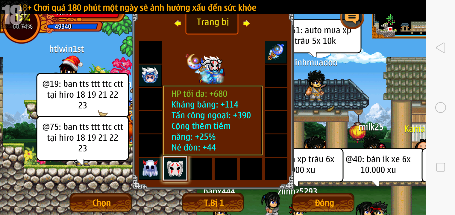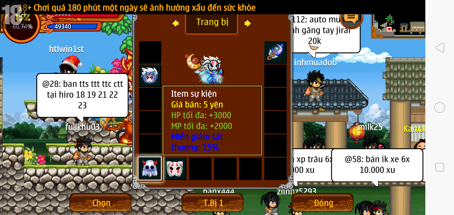 Thông tin: f16, ftl9, Gậy v.v, Ngọc: 6v6 1v5 1v4, Mắt 3, Sói + XM 5*2cm, tc, cx(kp), ftbs9999 (6666), ~2 Tỷ Yên, CT vv: 1 cái, Thẻ đổi tên, PT: Tiêu 111...VIP