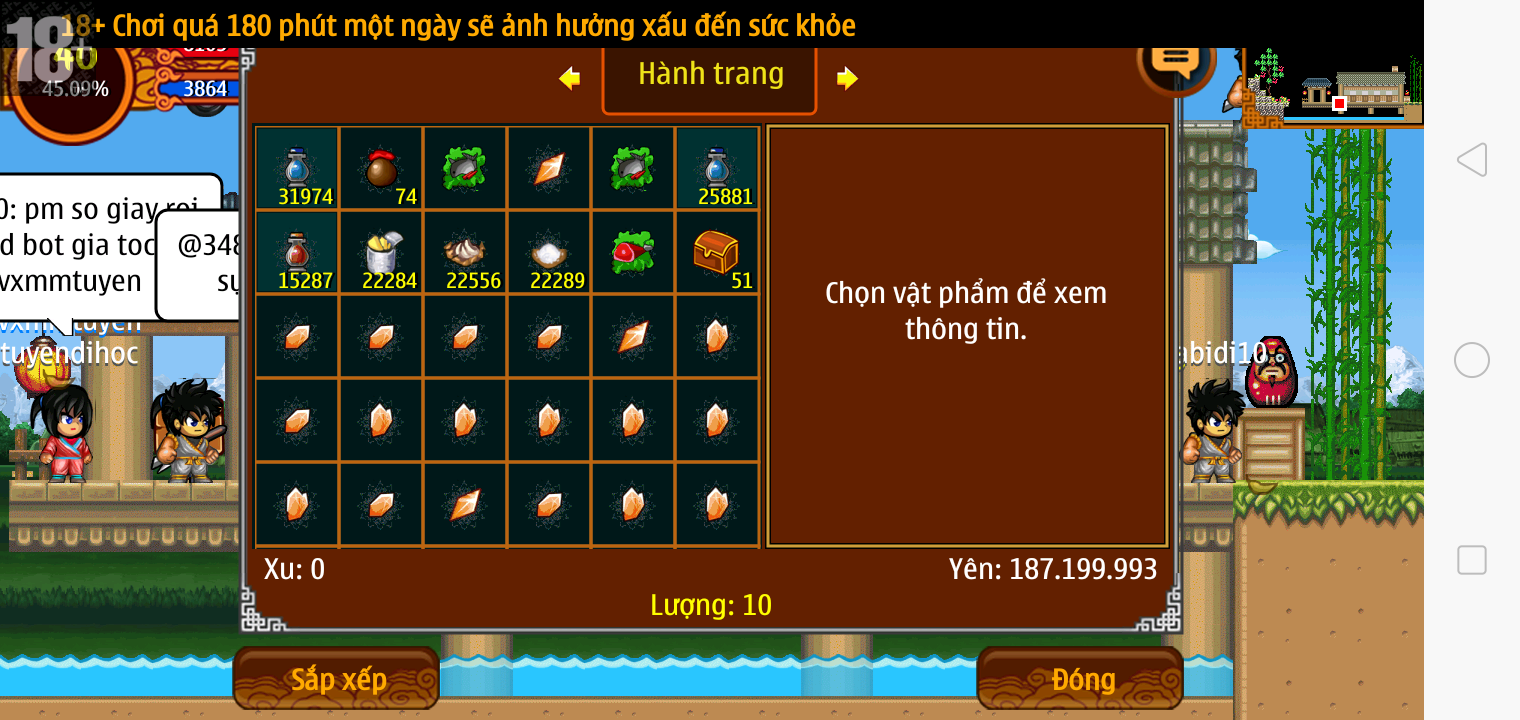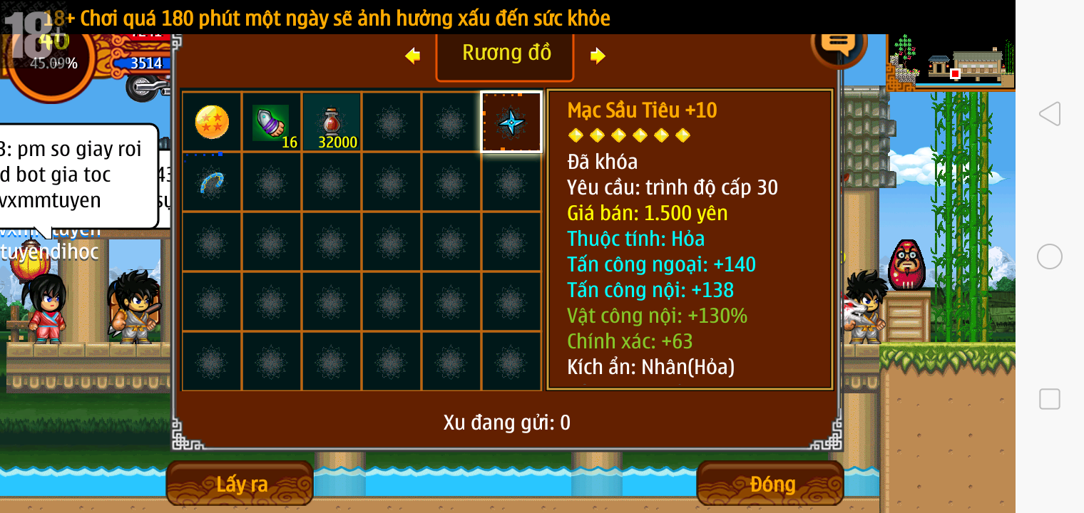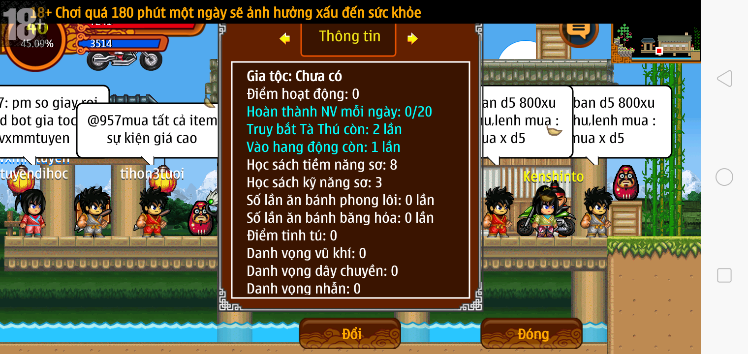 Thông tin: Vk1l tl6, f8, Trâu đen 2cm, né, kb, ftbs1355, T.lộc: 21/1, 10lg, 187M Yên, Max sách, ...Ngon