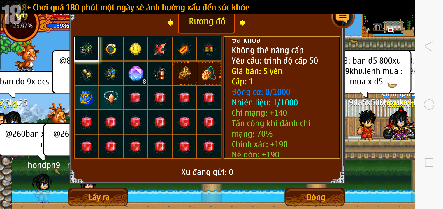 Thông tin: Vk14 tl9, f14, 16, Mắt 4, GT: 374%, Sx 5*2cm + XM 5*2cm, né cx, tc, cst, ftbs1111, 16lg, 4M Yên, CT vv: 1 cái, Tvc4 k khoá, ...PT: tiêu 46 Sẵn đồ 5x tl3456 VIP PRO